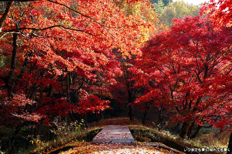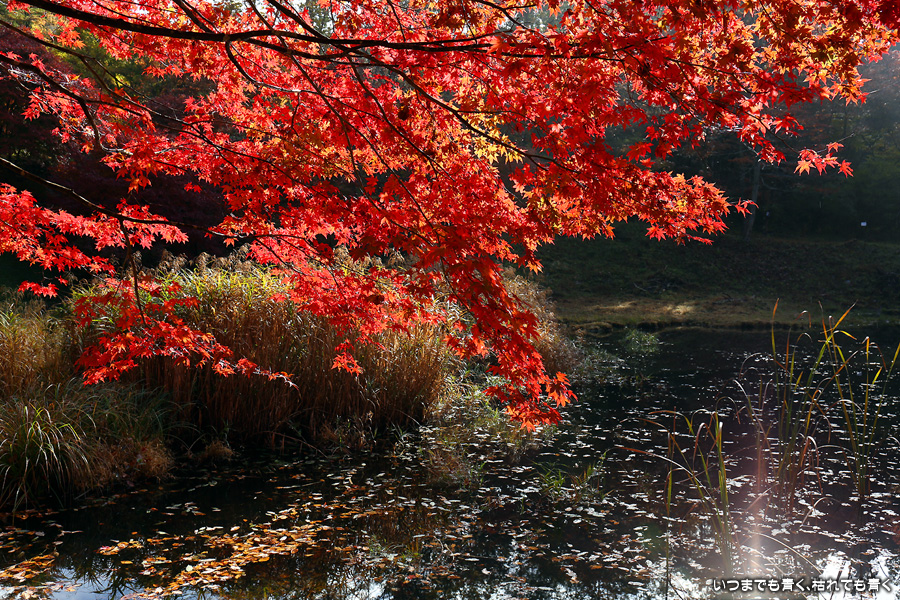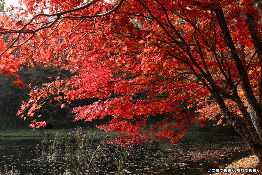 駐車場整理をしていた方に紅葉の状況を伺った時に「少し遅いと思うのでがっかりしないでね」と言われたのですが、がっかりするところなどはまったく無くまだまだ見頃で美しい紅葉でした。風がなく静かな池の水面にうつる紅葉と青空も素敵でした。広くはないところですがそれほど人も多くなくのんびりと紅葉を楽しめるいいところでした。