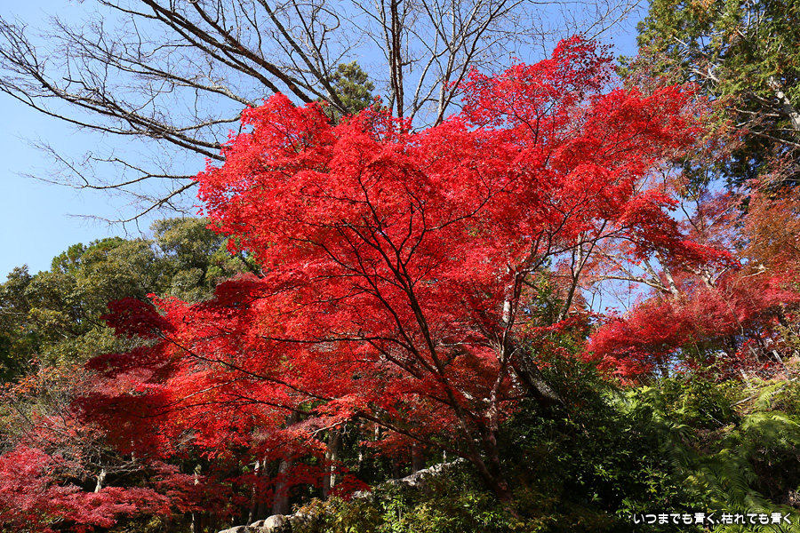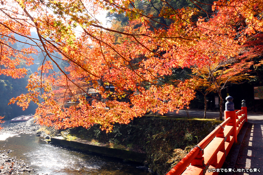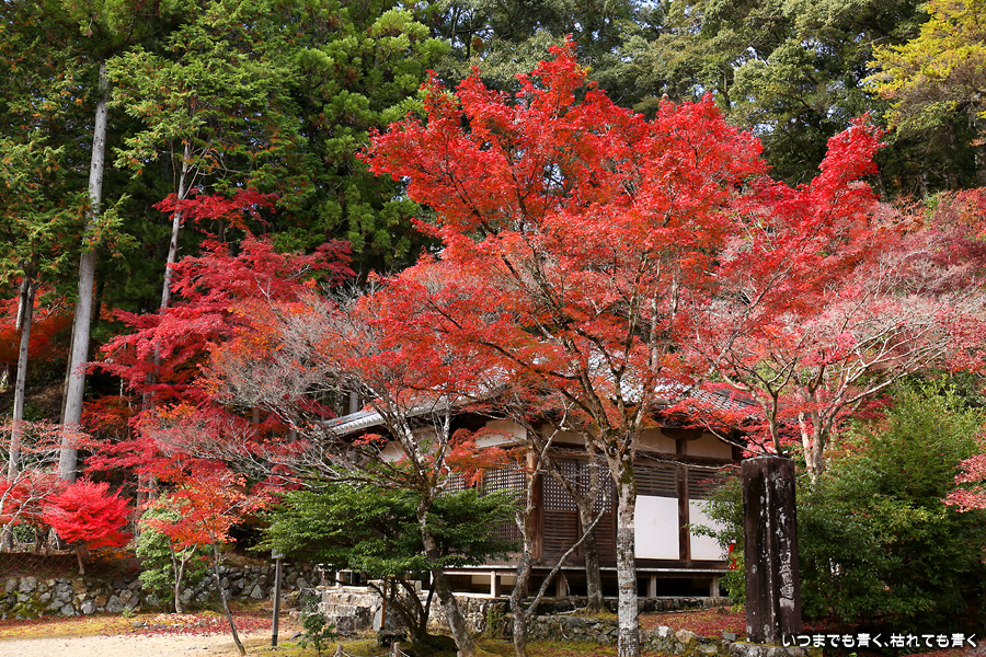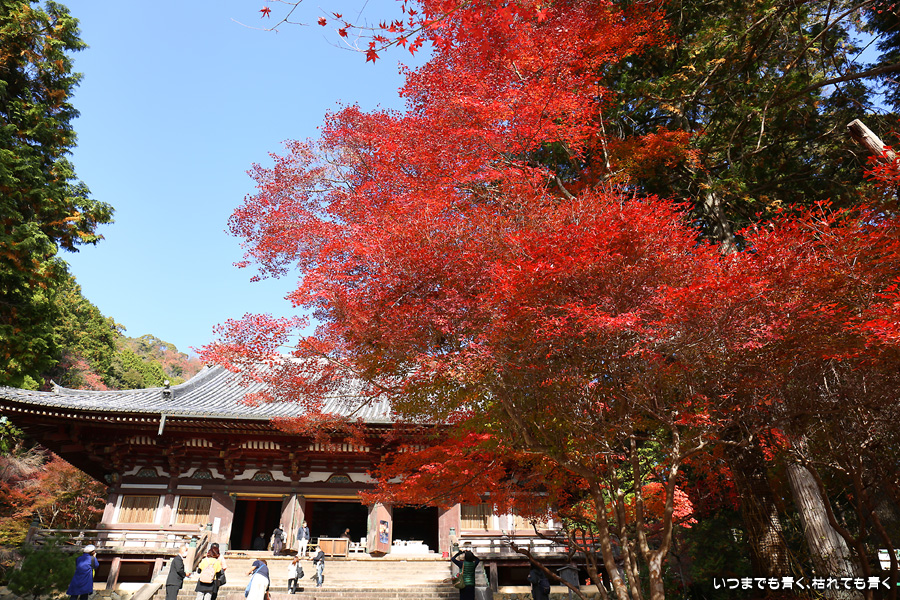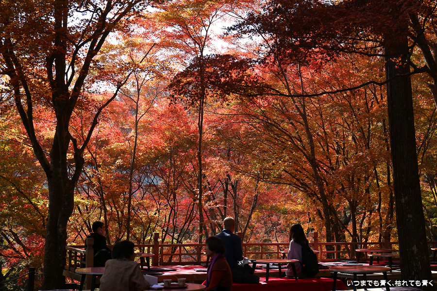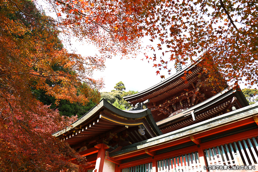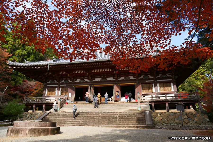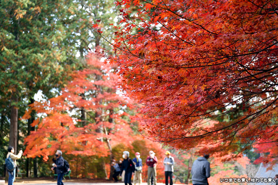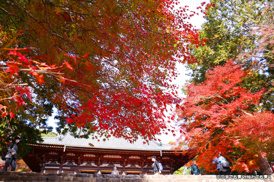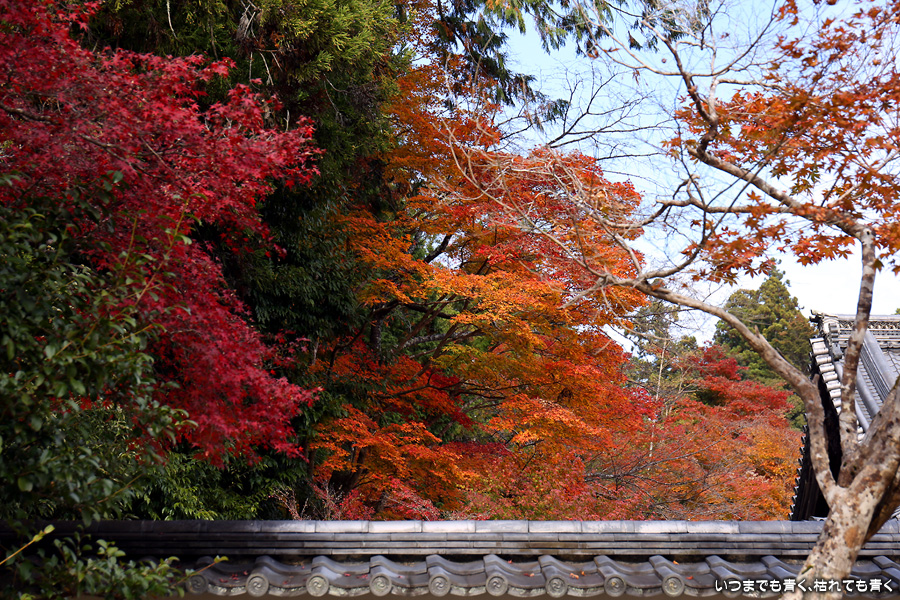 神護寺は5年ぶりになりますが、今回は紅葉が一番美しいのではないかと思える時期に来ることができました。長い時間いても飽きることなくいろんな構図を捜しながら写真を撮っていました。自己満足できる写真も多くて充実した時間を過ごすことができました。ただ、金堂まわりの撮影にあまりにも夢中になりすぎ、地蔵堂の方に行くのを忘れてしまいました。地蔵堂まわりの紅葉を見忘れただけではなく、今回もまた「かわらけ投げ」をせずに帰ってきてしまったことになります。「かわらけ投げ」は次回の楽しみに残しておくことにします。写真の最後の4枚は、楼門からの境内ではなく参道での写真です。