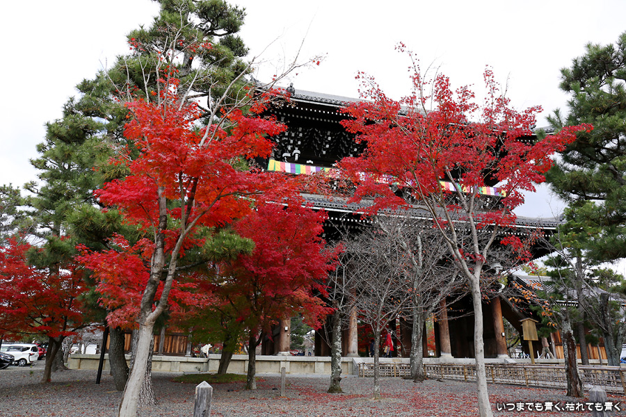 有料拝観の庭園も紅葉は美しいのですが、私はこの堂々とした山門と山門まわりの紅葉が大好きで、それを見るだけで十分満足してしまうことが最近は多いです。