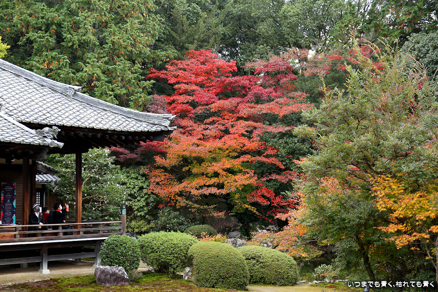 随心院は小野小町ゆかりのお寺です。4年前に初めて訪れた時には、ミス小野小町とツーショット写真を撮っていただきました。このお寺は私の好きなお寺のひとつで、いつもそれほど人は多くなく静かに庭を眺めながら時間を過ごすことができます。紅葉を楽しむということでは物足りなく感じるかもしれませんが、私はこの雰囲気が好きです。写真の最後の4枚は、紅葉の写真ではなく記録写真です。