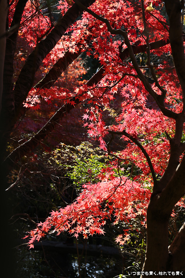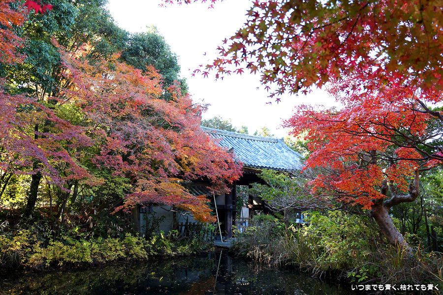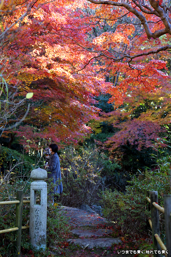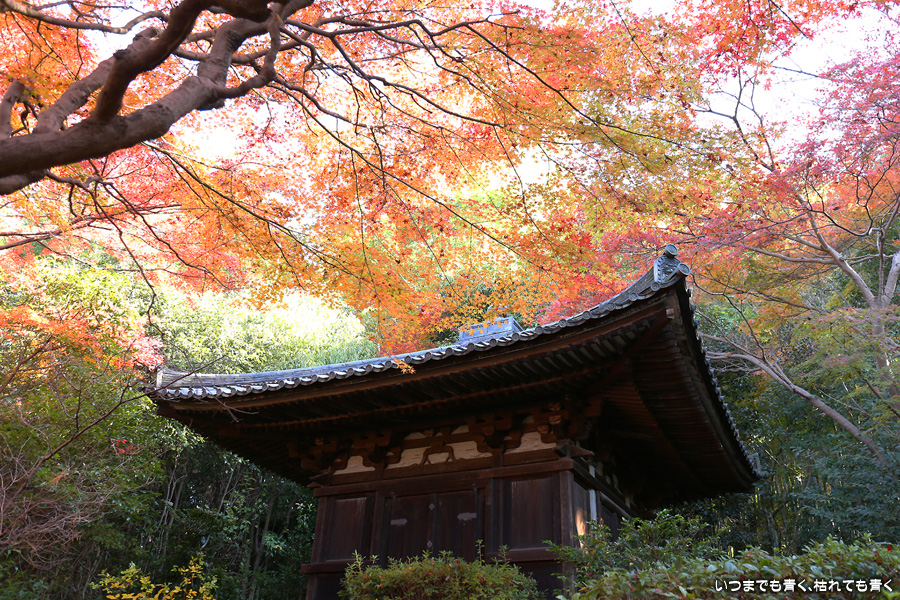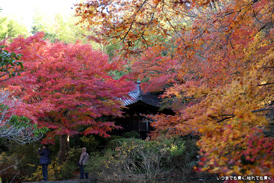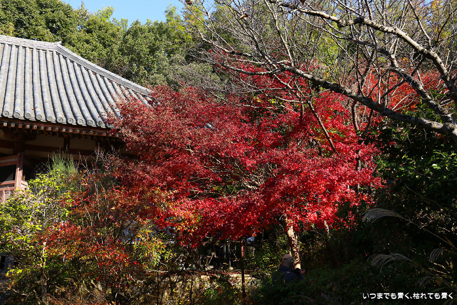 不退寺もテレビで紅葉が美しいと紹介されていたので訪れました。不退寺は在原業平が創建したと言われているお寺で「なりひら寺」と呼ばれています。お寺めぐりを始めてからいろんなお寺を訪れましたが、在原業平ゆかりのお寺で「なりひら寺」と呼ばれているお寺はけっこう多いです。不退寺の境内は狭いですが、紅葉の見どころや撮影スポットはたくさんあって、1時間半以上撮影を楽しんでしまいました。太陽の角度によって見え方が変わるので、そういう意味でも長くいて変化を楽しむのが良さそうです。