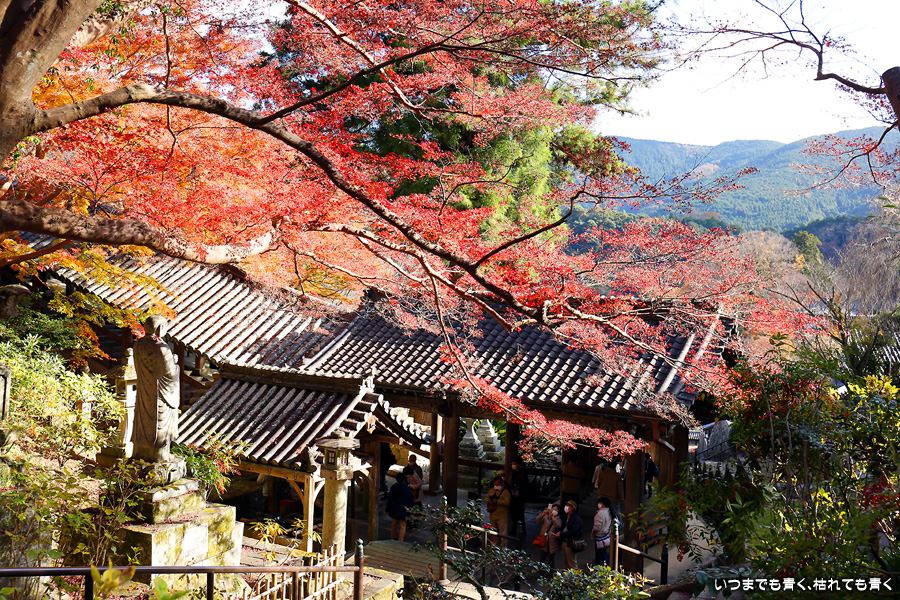 長谷寺は何度も来ていますが、紅葉の時期に訪れたのは初めてです。長谷寺はいつもながら見どころがいっぱいで、紅葉のシーズンも見ごたえ十分でした。写真の枚数も多くなってしまいました。今回は次に室生寺に行きたかったので少し時間に追われた感じの拝観でしたが、長谷寺は一日楽しむつもりで来ないとダメですね。page1の12枚目の写真は長谷寺で有名な撮影スポットですが、青葉の写真と紅葉の写真が揃いました。