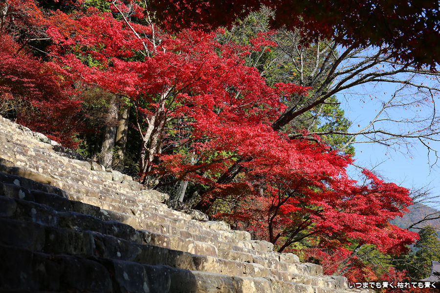 昨年より一週間早く訪れた神護寺ですが、今年は今がちょうど見頃で真っ赤な紅葉を楽しむことができました。一部青葉のままの葉もありますが、それはそれで緑、オレンジ、赤のグラデーションを楽しむことができます。何度も訪れている神護寺ですが、いつも行くのを忘れていた地蔵堂周辺や「かわらけ投げ」の場所まで行って撮影してきました。初めてやった「かわらけ投げ」はまともに左に円を描いて飛んだのは3枚中1枚だけで、ちょっと情けない結果となってしまいました。