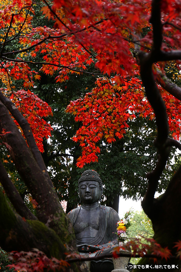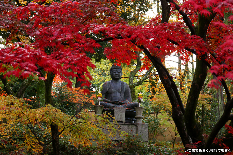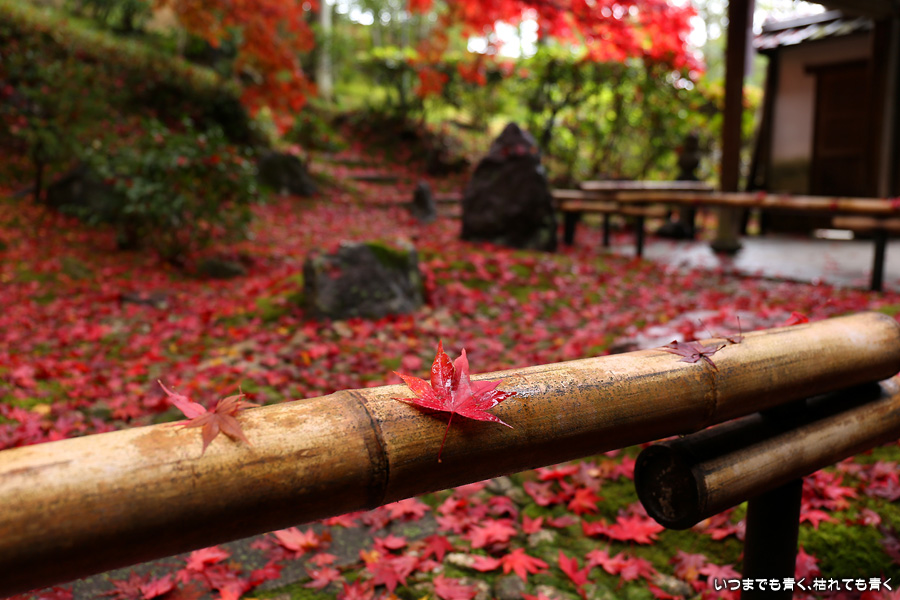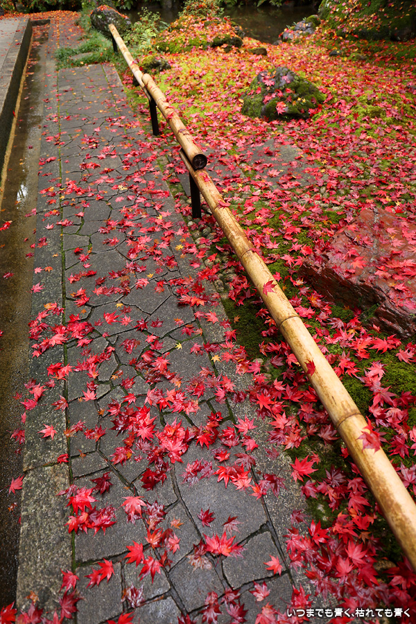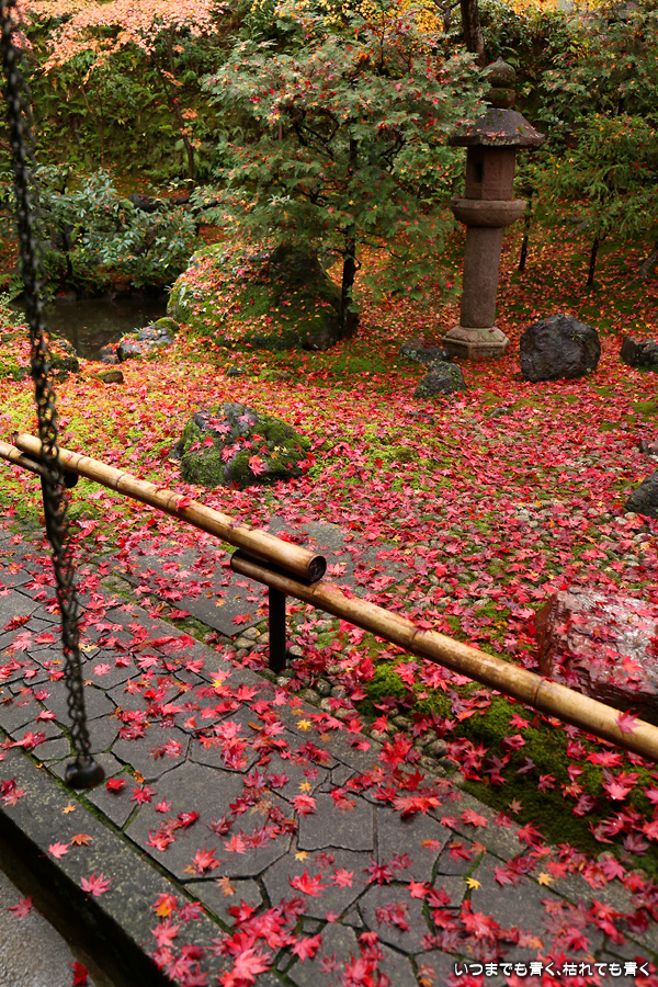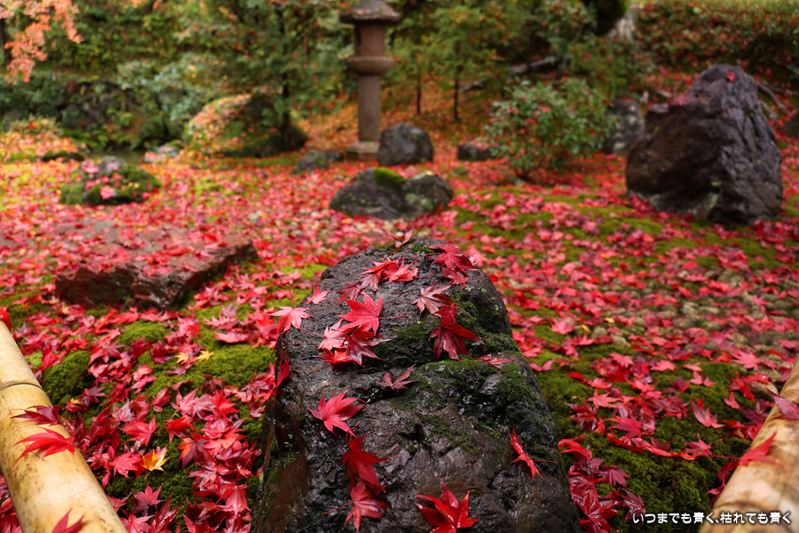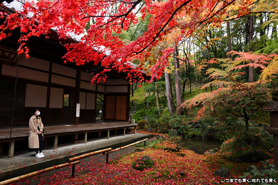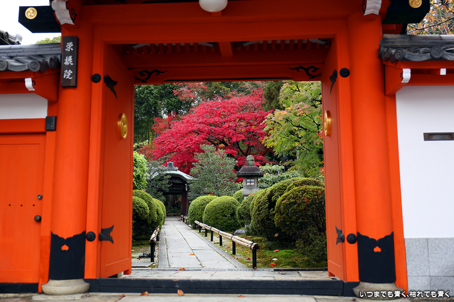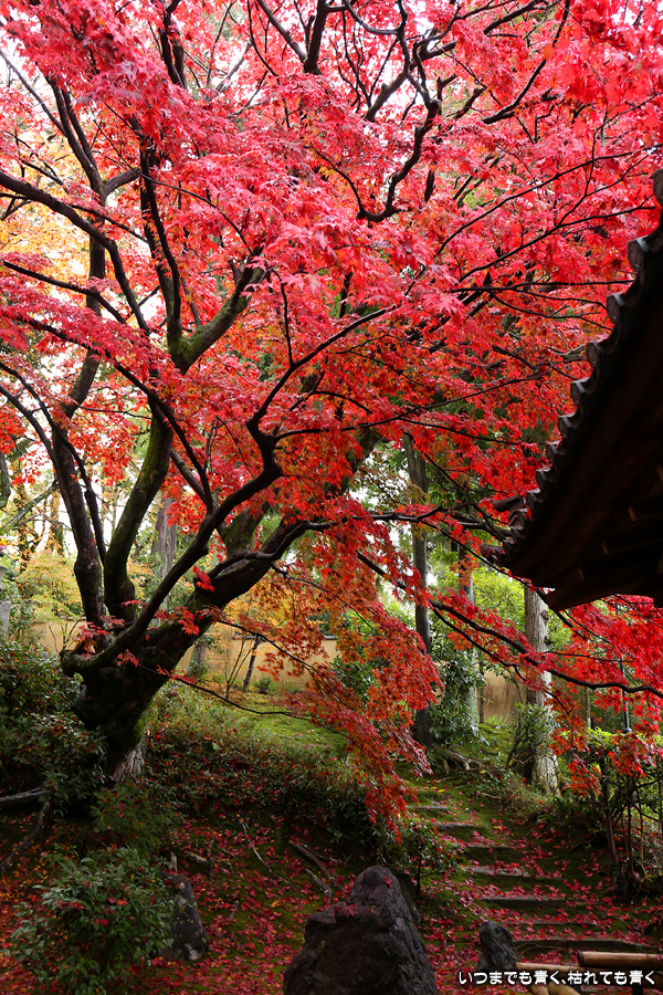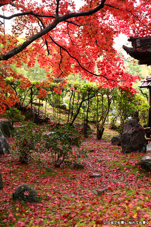 秋の京都を訪れた時には必ず訪れる栄摂院です。狭い庭ですがその庭の空を覆うような真っ赤な紅葉が魅力です。日が差していれば池に移る紅葉はもっと鮮やかに映っていて絵になる情景になったと思います。落ち紅葉も美しかったです。御朱印の案内がありましたので初めて栄摂院の御朱印もいただきました。