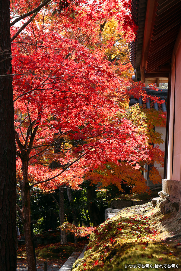 昨年は人のいない写真を撮りたかったので朝一番に訪れましたが、今年は宝筐院に先に行きましたので人が多いのは覚悟で訪れました。人が多くても二尊院は好きな寺院なので嵐山に来たら外すわけにはいきませんが、思っていたよりは人は多くなく、さすがに「紅葉の馬場」は人のいない写真は難しかったですが、その他の場所では少し待てば人のいない写真を撮ることができました。今年の二尊院の紅葉は色づきもよく、葉もまだ美しい葉が多くて一番いい時期に訪れることができたと思います。写真は、自己満足ですが思った通りに撮れている写真が多く、やっぱり全体的に被写体が美しいといい写真も多くなりますね。そういう時は写真の選別・色調補正作業も楽しくなります。