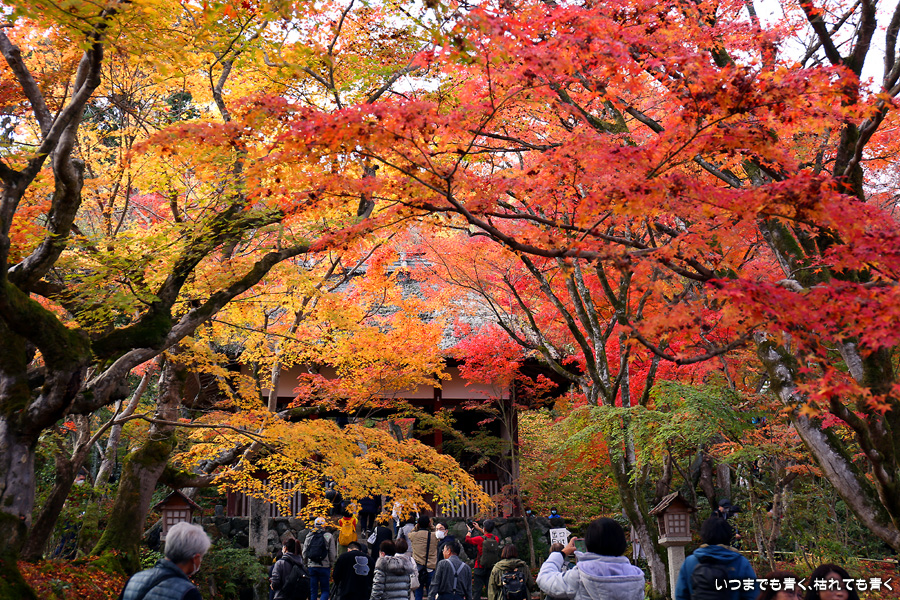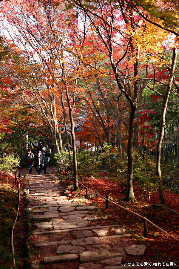 紅葉の季節、嵐山で私がいつも訪問するお決まりの場所は、二尊院、常寂光寺、祇王寺。今年は祇王寺は時間の関係と優先度であきらめましたが、常寂光寺の紅葉はやはり見ておきます。常寂光寺は境内が広く見所が多いので、紅葉の多様な景色を楽しめます。二尊院と同じく、常寂光寺も紅葉を楽しむには最適の時期でした。人はかなり多く写真を撮るにはちょっと我慢や割り切りが必要でした。