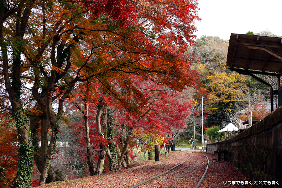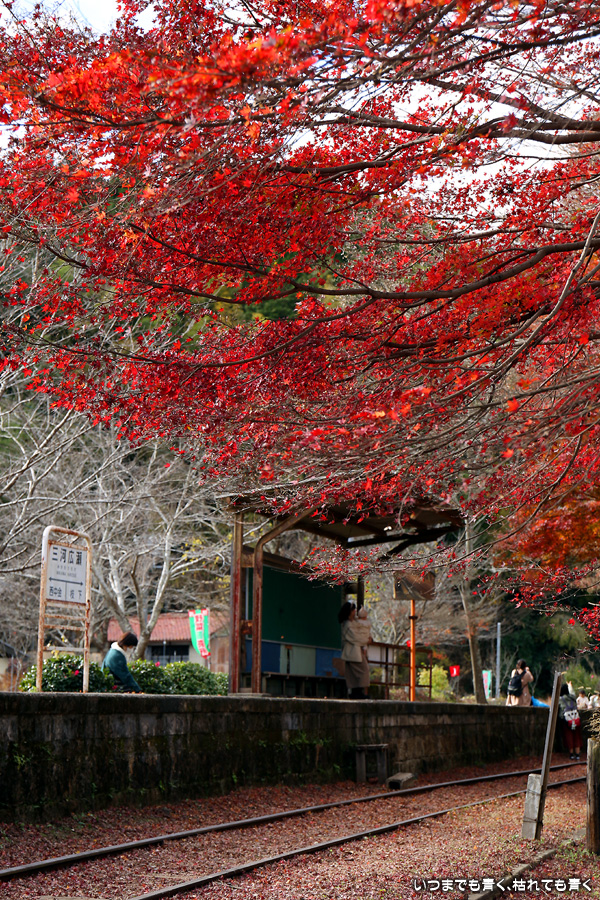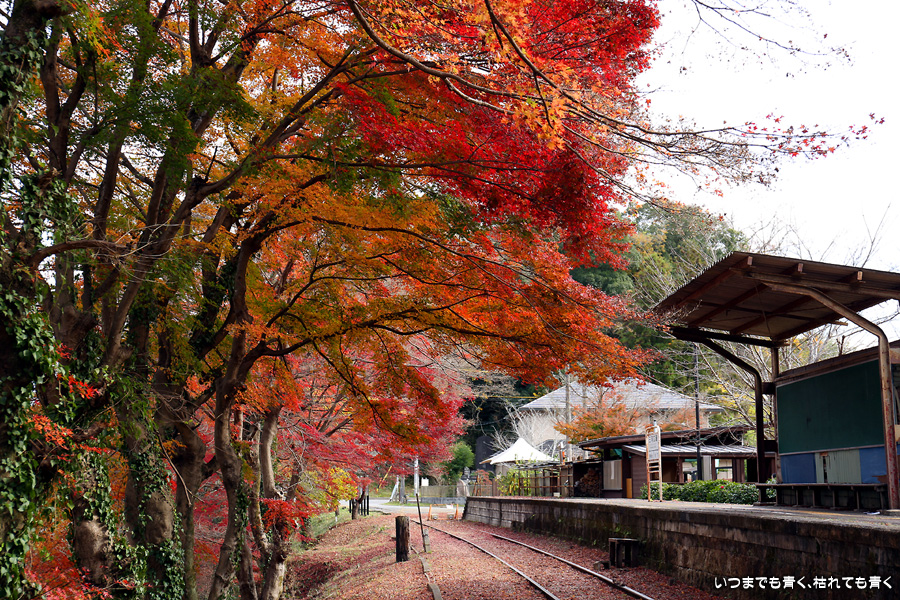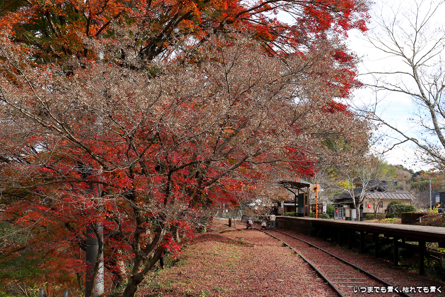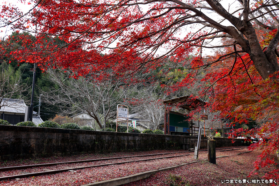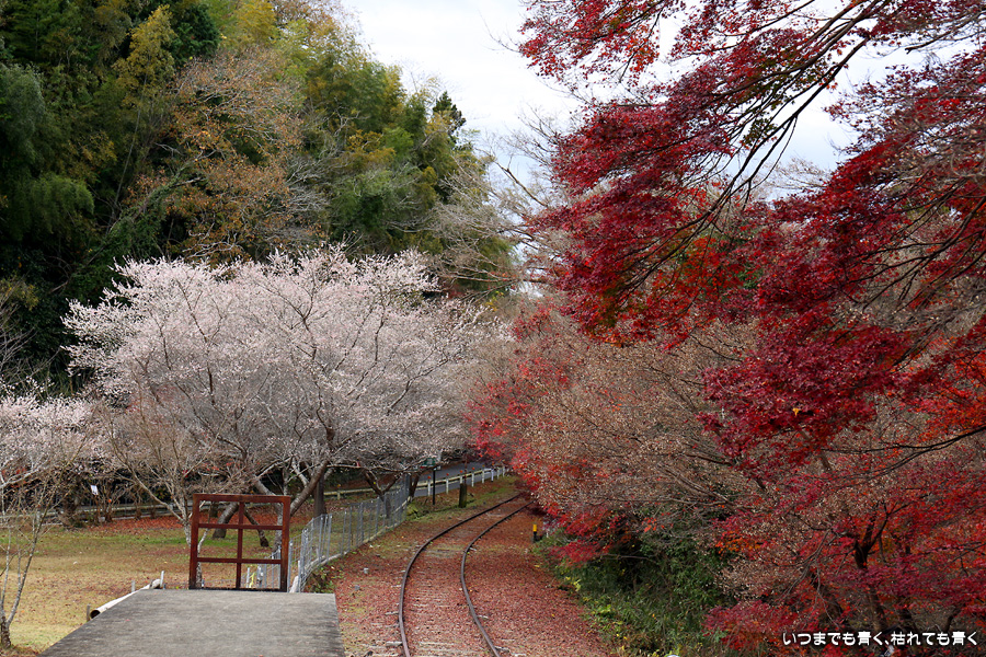 2022年12月1日(木)に撮影した、愛知県豊田市・旧名鉄三河線(山線)三河広瀬駅(廃駅)の紅葉の写真です。