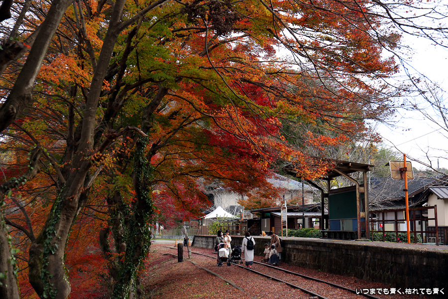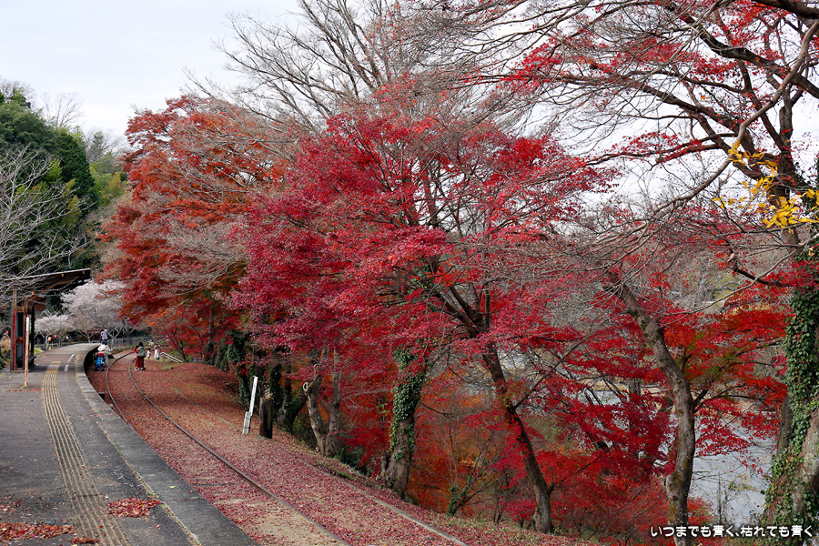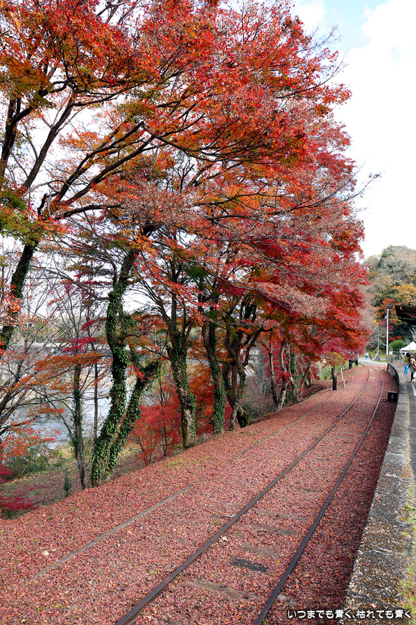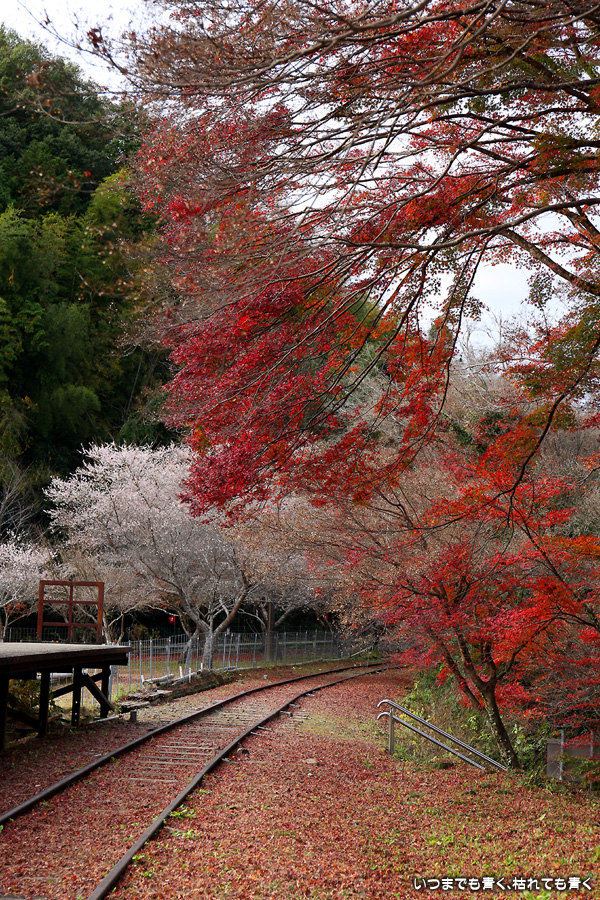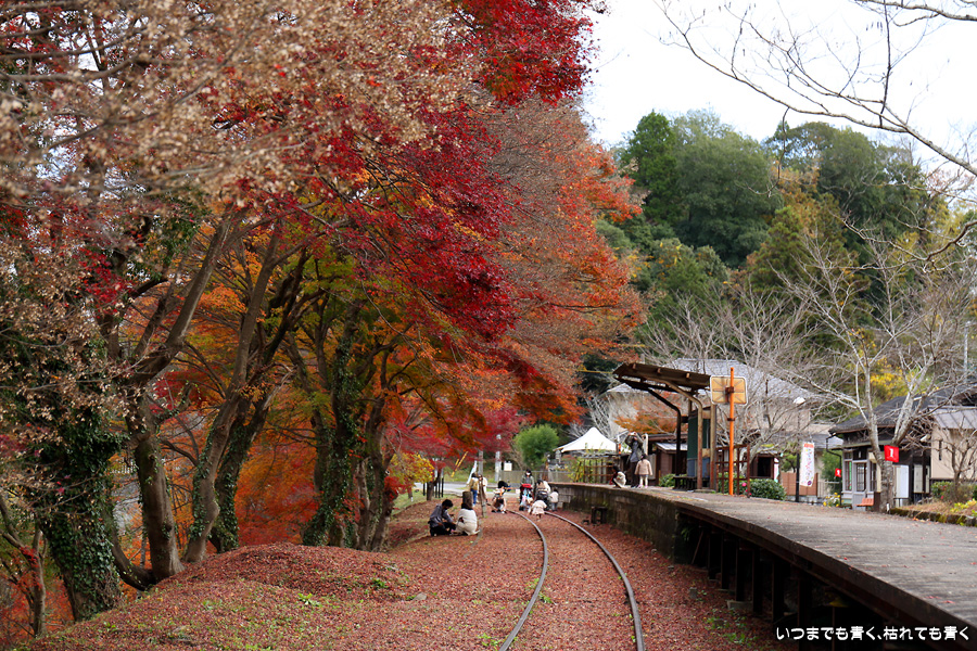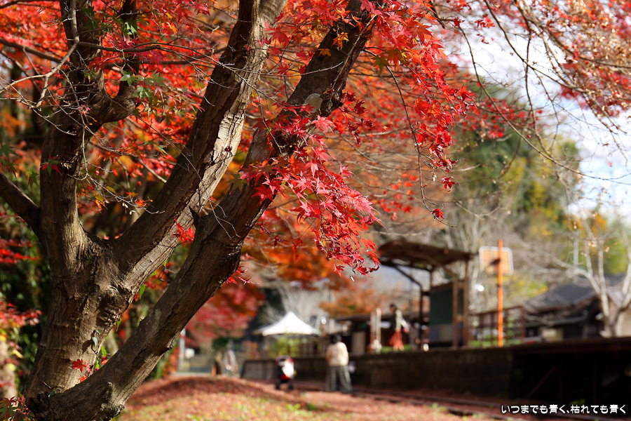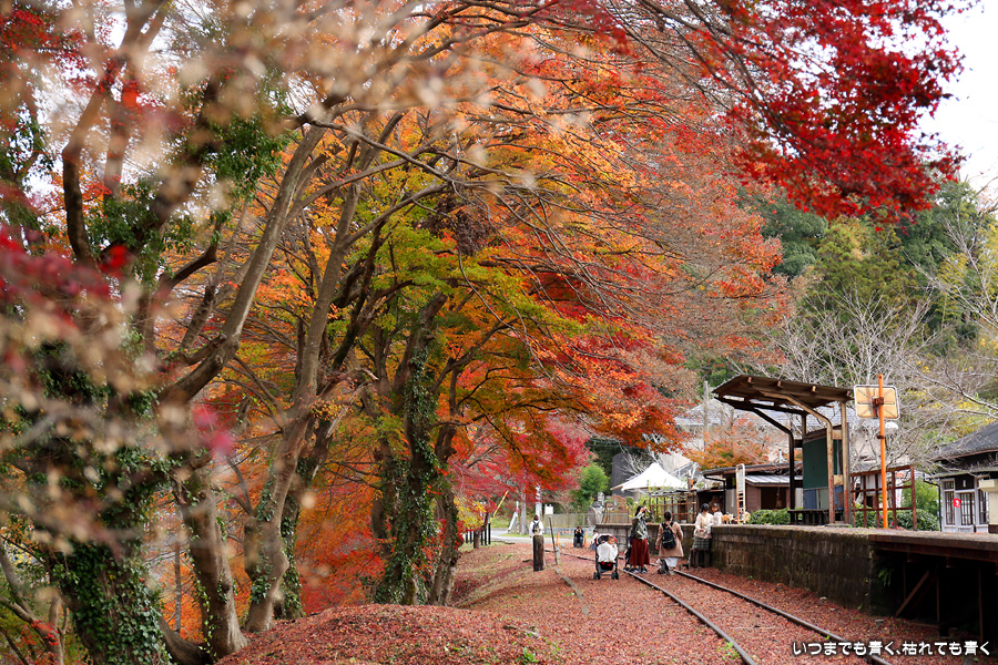 2022年12月1日(木)に撮影した、愛知県豊田市・旧名鉄三河線(山線)三河広瀬駅(廃駅)の紅葉の写真です。