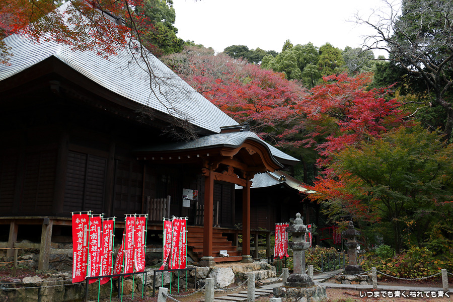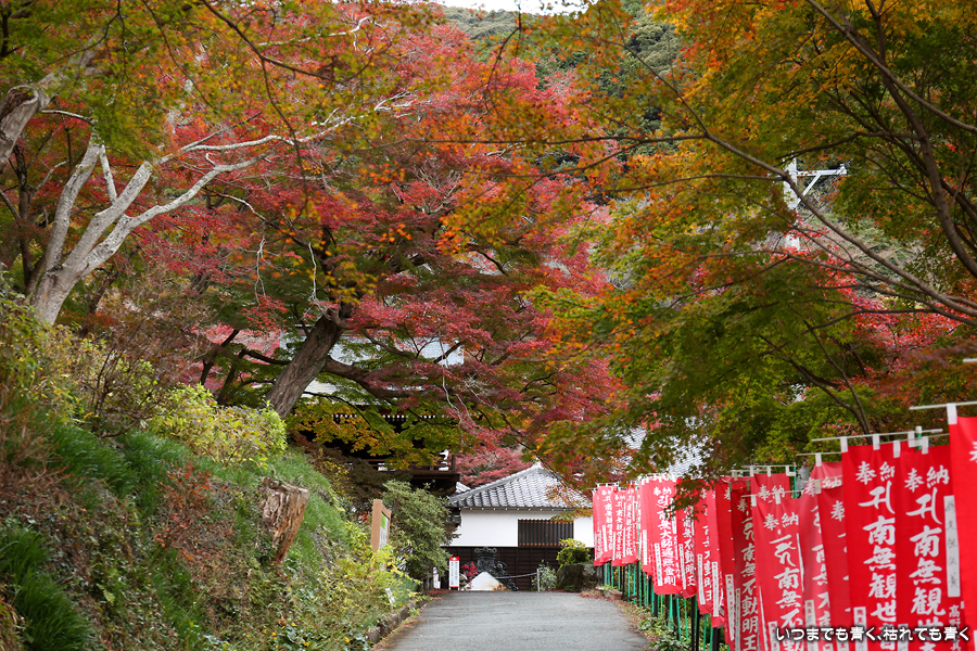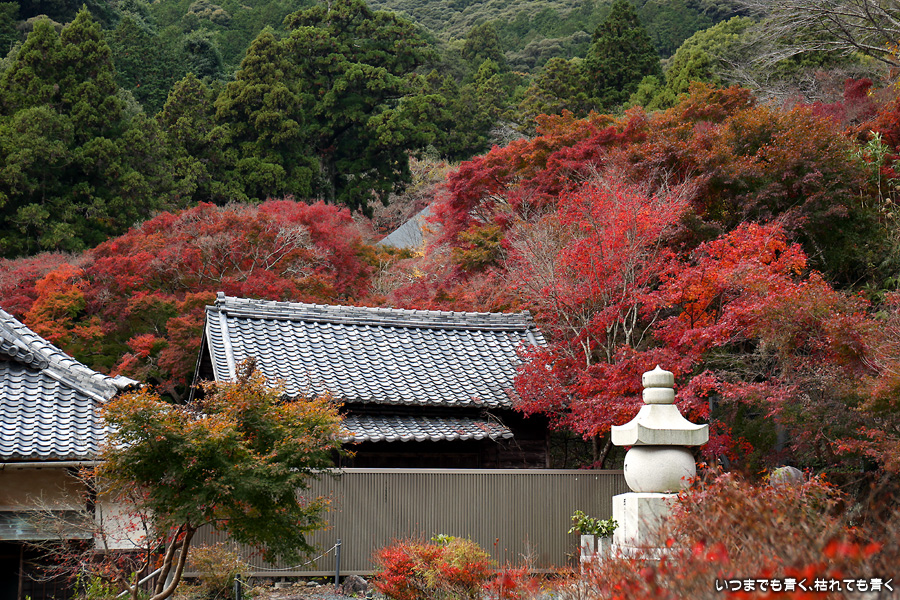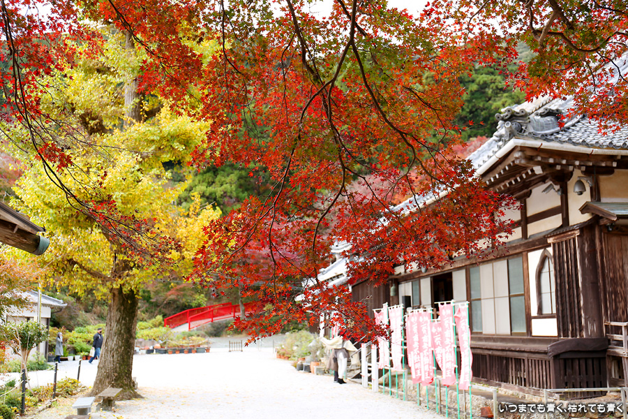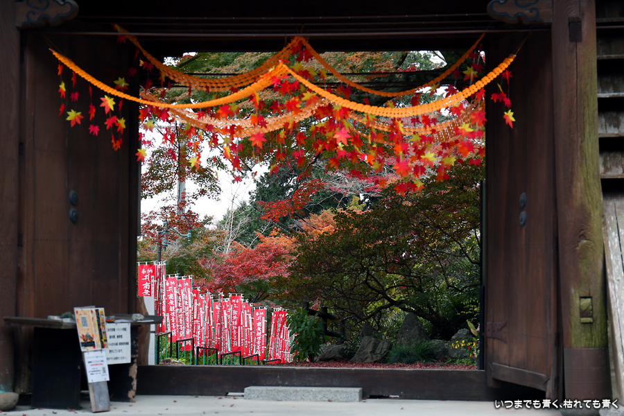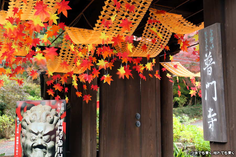 大和の大いちょうを見に行った帰りに立ち寄りました。普門寺はもみじ寺と切り絵の御朱印で有名です。SNSも活用されていて紅葉状況も頻度高く紹介されています。「愛知県で一番遅くまで紅葉を楽しめる」という通り、紅葉した葉とまだ青い葉が混じり合うという感じで、12月にはいっていますがまだしばらくは楽しめそうな状況でした。仁王門裏の古木もみじが一番最後に色づくことから晩秋を惜しむ「名残もみじ」と呼ばれていますが、今年もその木が真っ赤に色づいた姿は見ることができませんでした。