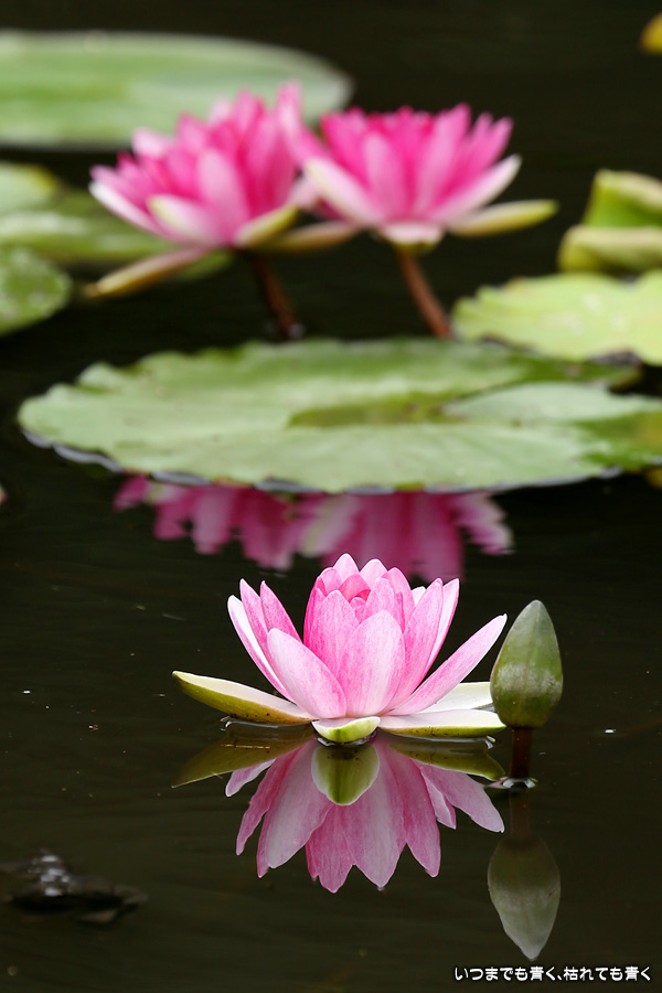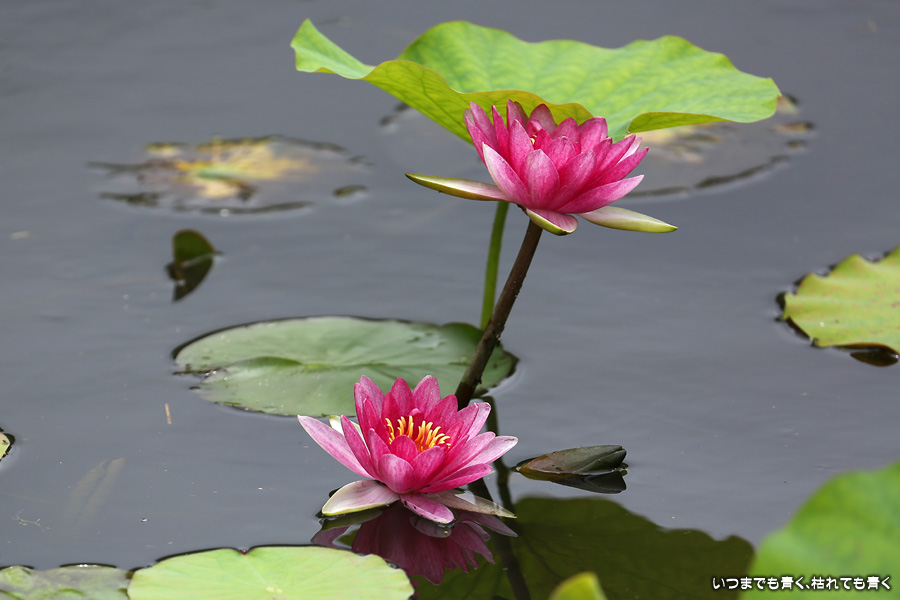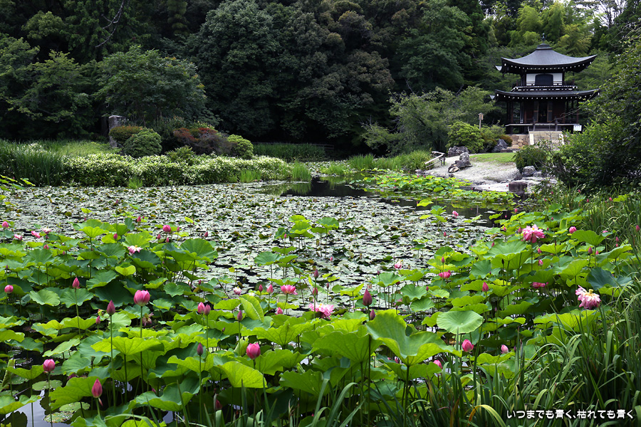 初めて訪れた勧修寺の睡蓮の花です。観音堂の脇の池にたくさん咲いていました。同じ池に蓮の花もたくさん咲いていましたので、その写真は
