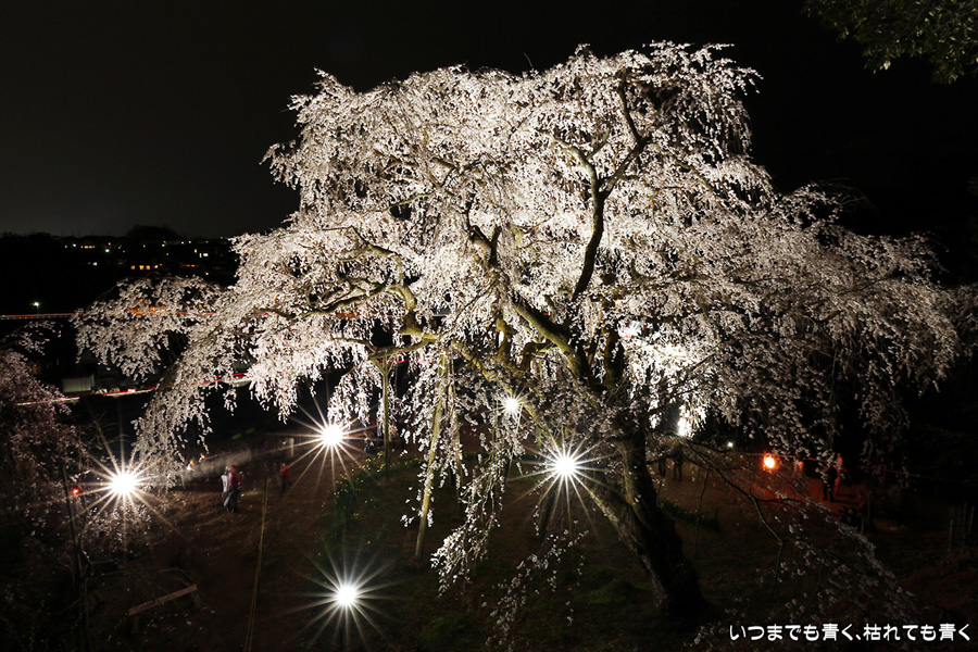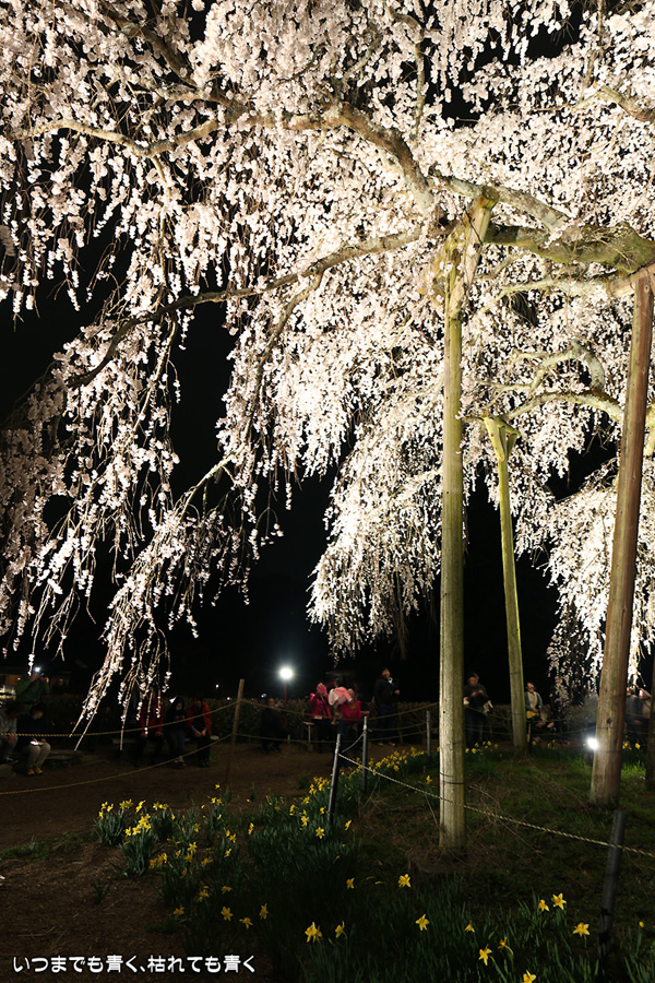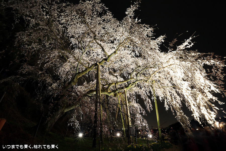 仕事を終えたあと、ライトアップされた奥山田のしだれ桜を見に行ってきました。今年は見事に咲き誇っていて、荘厳なたたずまいです。