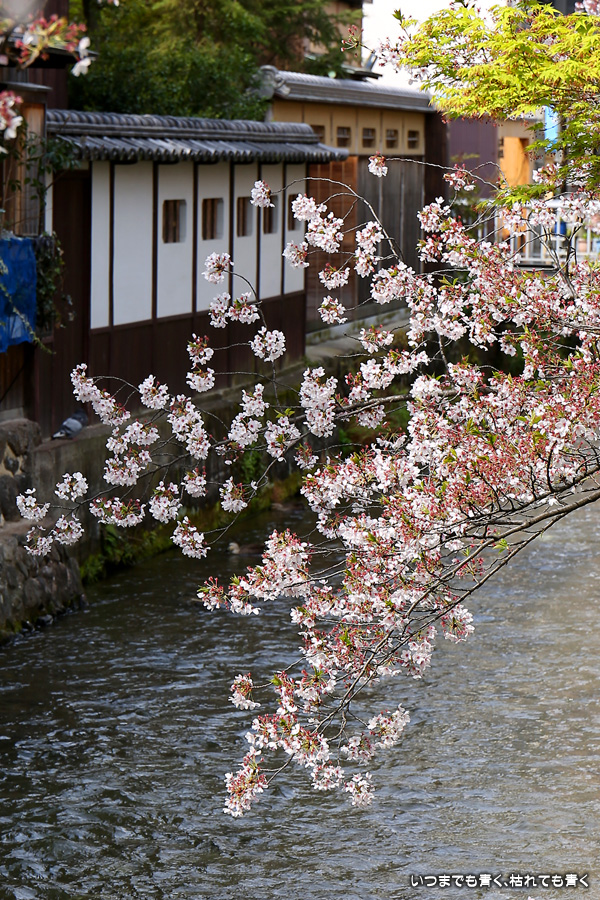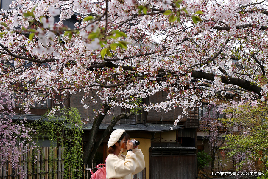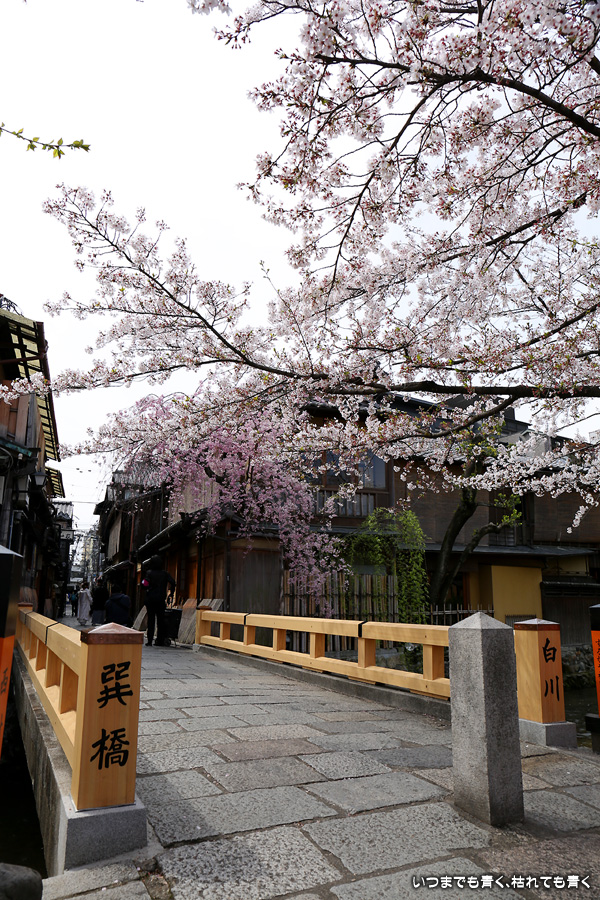 岡崎から祇園まで白川沿いを自転車に乗って桜を楽しみました。このあたりは私の好きなところで、行者橋や古川町商店街を楽しみながらのんびりと楽しみました。巽橋近辺は着物姿の女性も多く、写真にも少し入っていただきました。