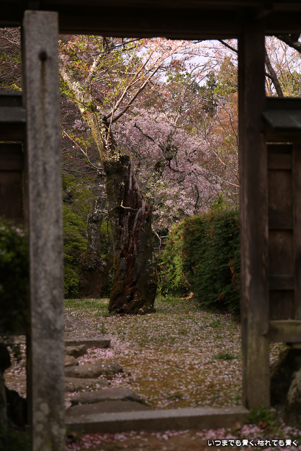 本当は3月27日に訪れるつもりだったのに、忘れて飛ばしてしまったお寺です。一週間経つと情景は一変。枝に花はまだ残っているものの葉が出てきていますし、地面はピンクの花びらで覆われています。満開の情景も見たかったですが、この情景も美しいですしこれも縁なので、満開の情景は来年以降の楽しみしておきます。初めて訪れた勝持寺というお寺は花の寺とも呼ばれ、中に入ると高低差もあって広くてゆっくりとお寺の雰囲気を楽しめるお寺で、とても良かったです。