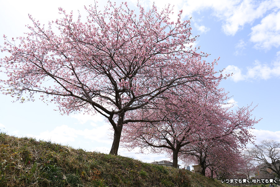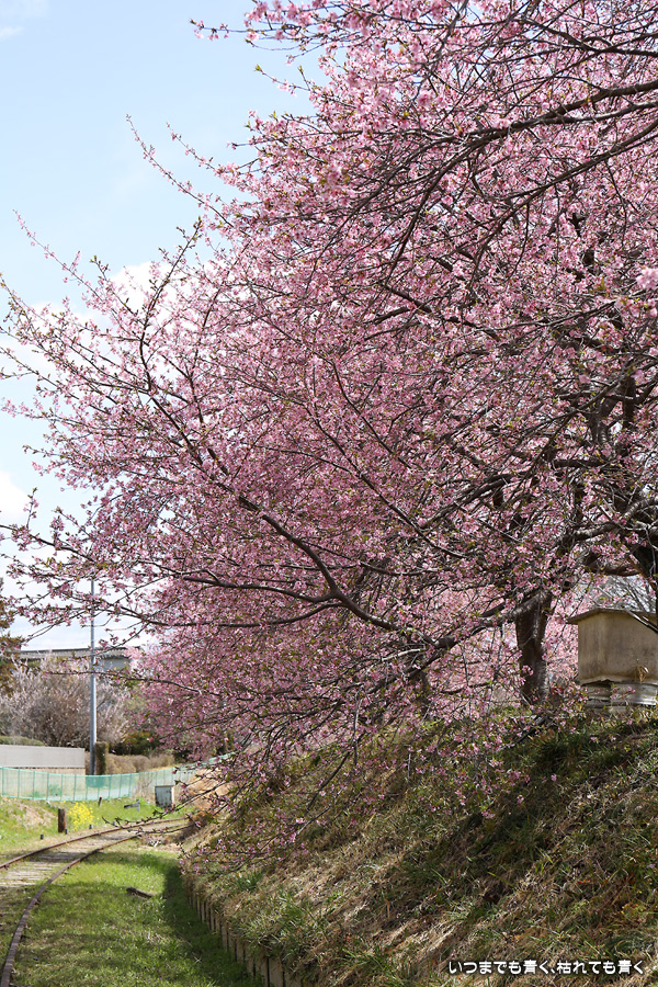 2022年3月20日に訪れた、豊田市・名鉄三河線御船駅跡ふれあい公園の河津桜の写真です。