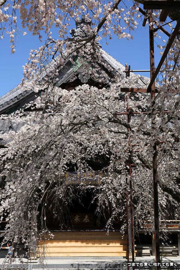 昨日の雨があがり嘘のような晴天になりましたので、近くのしだれ桜名所巡りをしてきました。ここは3年ぶりになりますが、満開で見ごたえがありました。ただ、金属製の支柱が写真にはちょと邪魔でした。来ていたカメラ趣味のおじさんの話によると、金属製の支柱は木を傷めると嘆いていました。ちゃんと樹木医が診ているとは思うのですけどね。