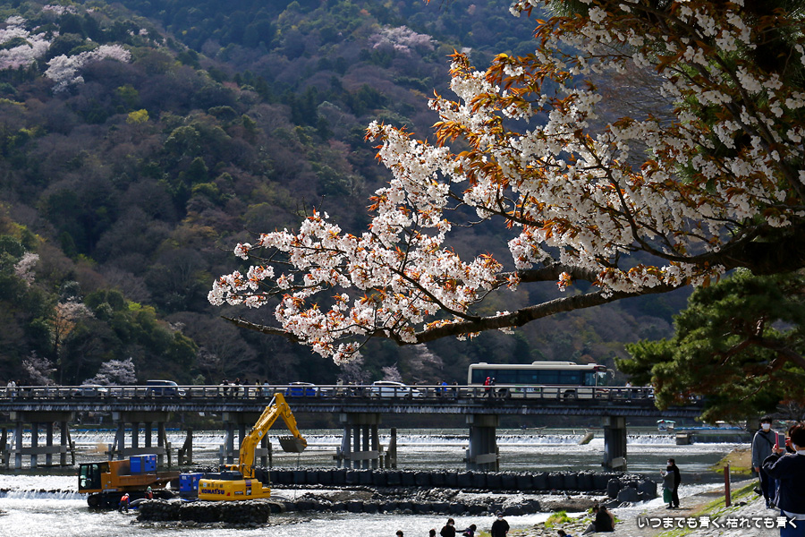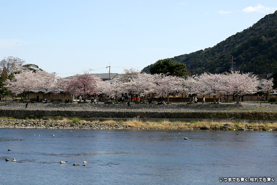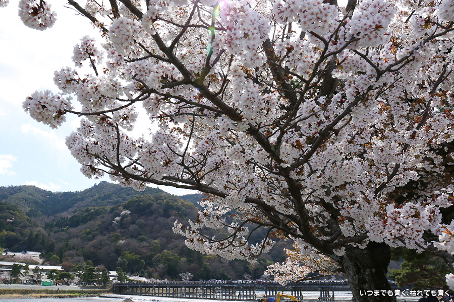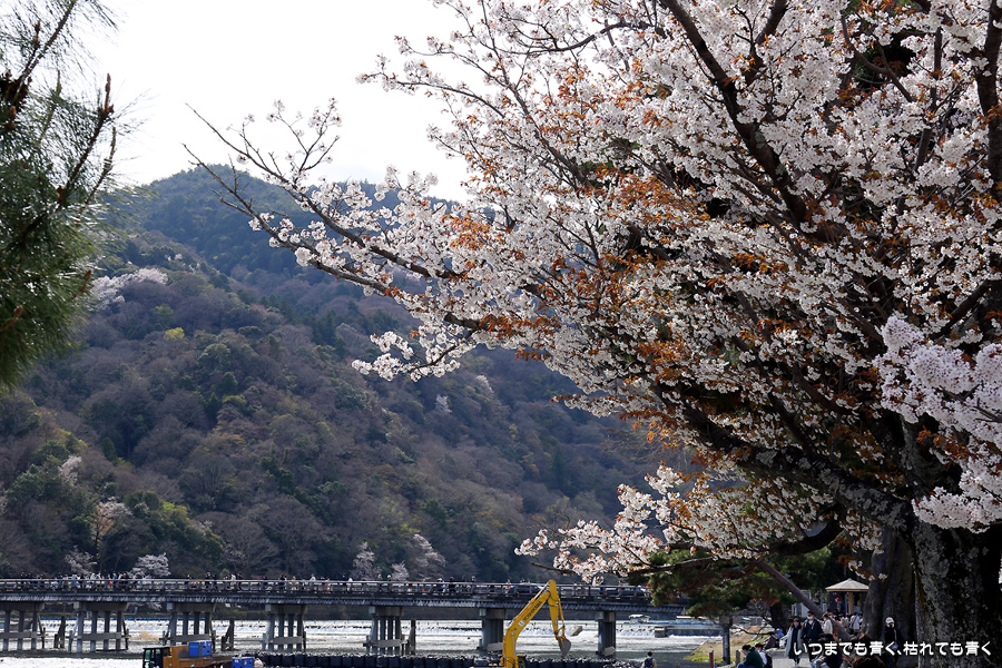 2022年4月1日に撮影した、京都・嵐山・渡月橋周辺の桜の写真です。