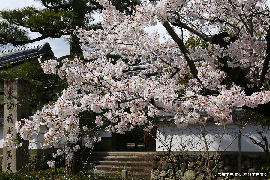 大覚寺から法金剛院へ行く前に、駐車場に戻るには反対方向でちょっと遠回りになるのですが渡月橋に立ち寄りました。渡月橋と桜の写真は風流な感じがして、ぜひ写真に残したかったのですが、写真撮影にはあまり良い状況ではありませんでした。桂川は工事中で工事車両が作業中で邪魔ですし、桜も葉が目立ってきていました。そういう状況と時間がなかったこともあり、橋を渡って反対側の桜を見ることは断念しまし、早々に切り上げて法金剛院に向かいました。最後の写真は天龍寺内にあった桜です。