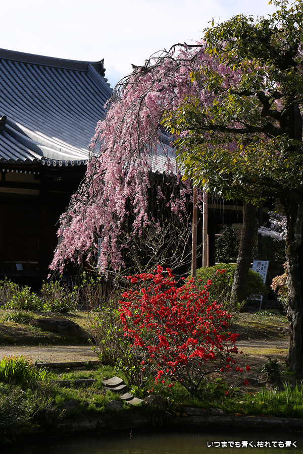 法金剛院は私の好きなお寺のひとつです。そこにある桜が待賢門院桜で、一度見てみたいと思って訪れました。待賢門院桜は見ごたえのある紅枝垂桜で、どこから見ても絵になる桜で、この桜の撮影だけで充分楽しむことができました。