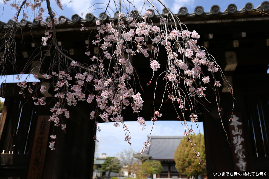 妙覚寺は桜の名所というわけではありませんが、本法寺・水火天満宮から妙顕寺に行く途中にあるので、今年も大門前のしだれ桜の写真を撮影しました。今回は青空なので、桜は少なくても華やかな感じがします。御朱印は今までは若い僧侶の方ばかりでしたが、今回は年配のご住職が対応していただきました。いろいろと話をしていただきましたが、私には難しくて相槌を打つのが精一杯でした。