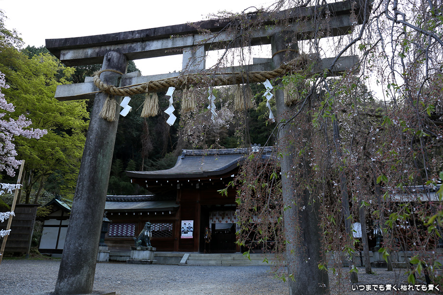 昨年雨だった大石神社に、帰り際に立ち寄りました。16時を過ぎて社務所も締まっていましたが、中から女性が出てこられたので御朱印をお願いしてみたら快く対応していただけました。今年はしだれ桜は早くてもう散ってしまったというお話もしていただけました。お話通り、本堂前のしだれ桜は少し花が残っているものの、遠目にはもう葉桜でした。