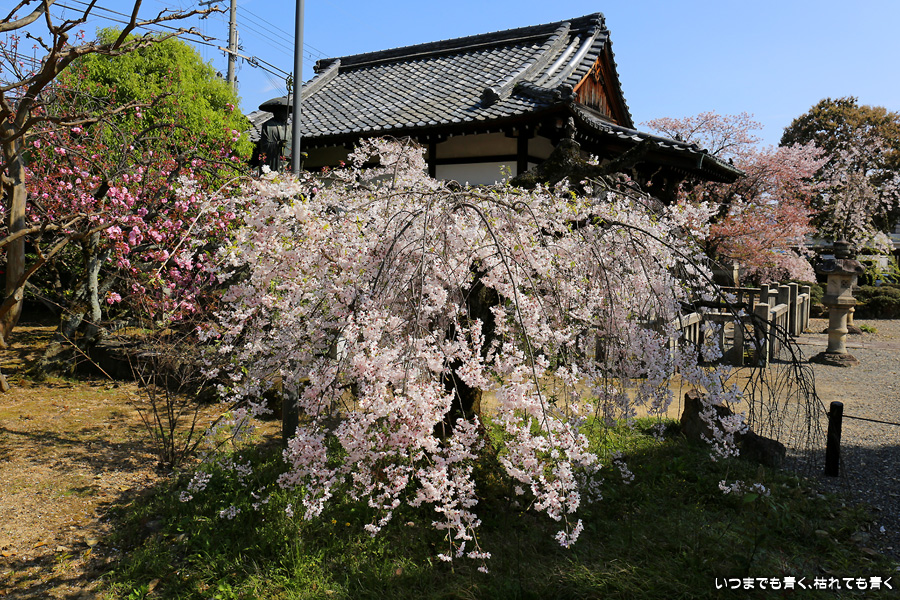 上品蓮台寺は桜開花情報で知った寺院で、初めて訪れました。人はまったくいなくて桜の名所という感じではありませんでした。桜もすでに葉桜の木も多くて、見ることができるのは鐘楼近辺のしだれ桜くらいでした。しかも電線が目立ち写真撮影の気分も上がりませんでした。御朱印も寺務所がわかりにくくていただくのを諦めてしまい、ちょっと期待外れの結果となってしまいました。
