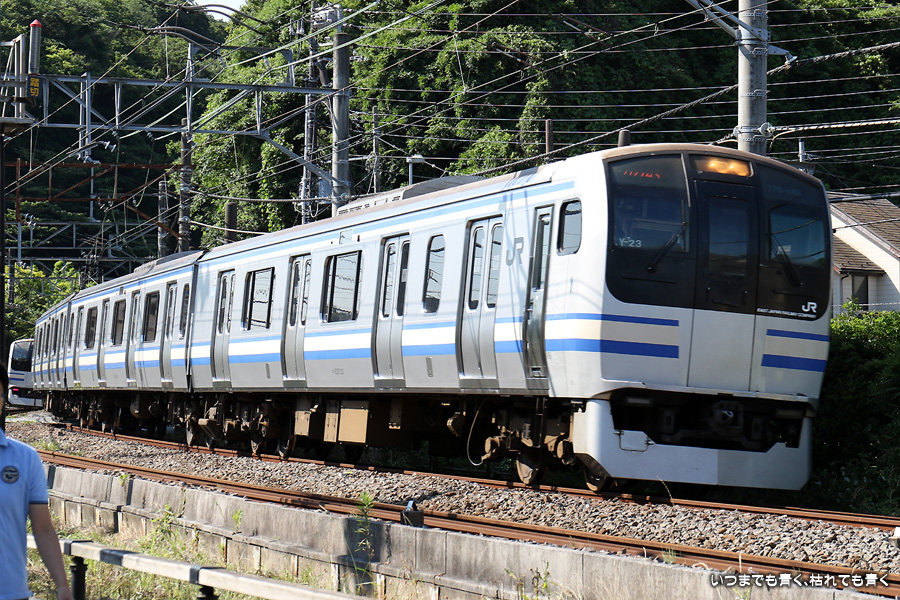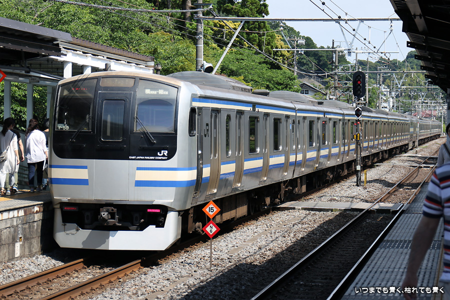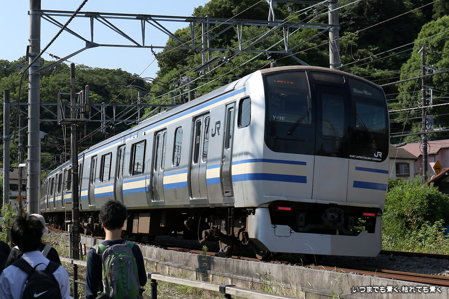 1枚目と2枚目は編成番号「114」で同じものですが、折り返しで列車番号が「515B」から「814B」に変りましたので別々に載せました。その後のE217系は、同じように見えますがすべて編成番号が異なる別車両(Y-16、Y-23、Y-42、Y-121、Y-50、Y-49)です。