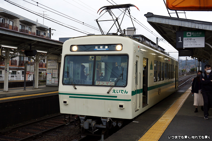 瑠璃光院に行くために、宝ヶ池駅から八瀬比叡山口駅まで、初めての叡電電車叡山本線に乗車しました。たった二駅分だけなので乗り鉄を楽しむには短すぎました。