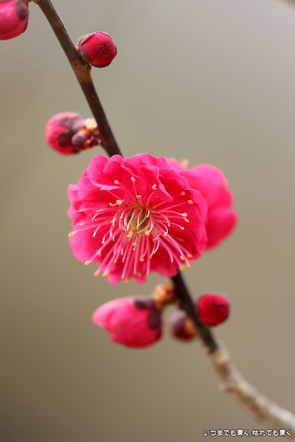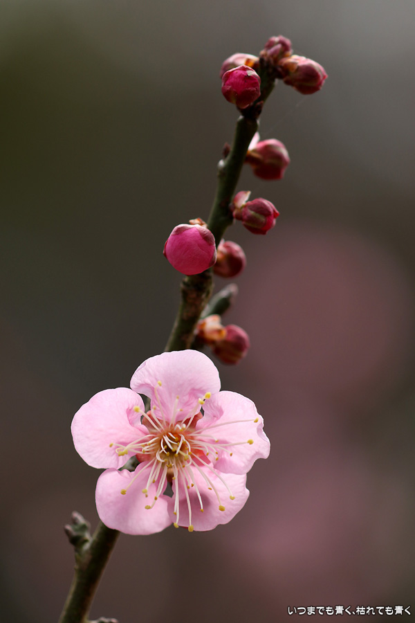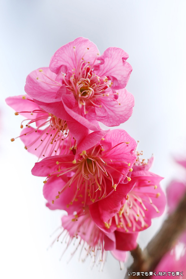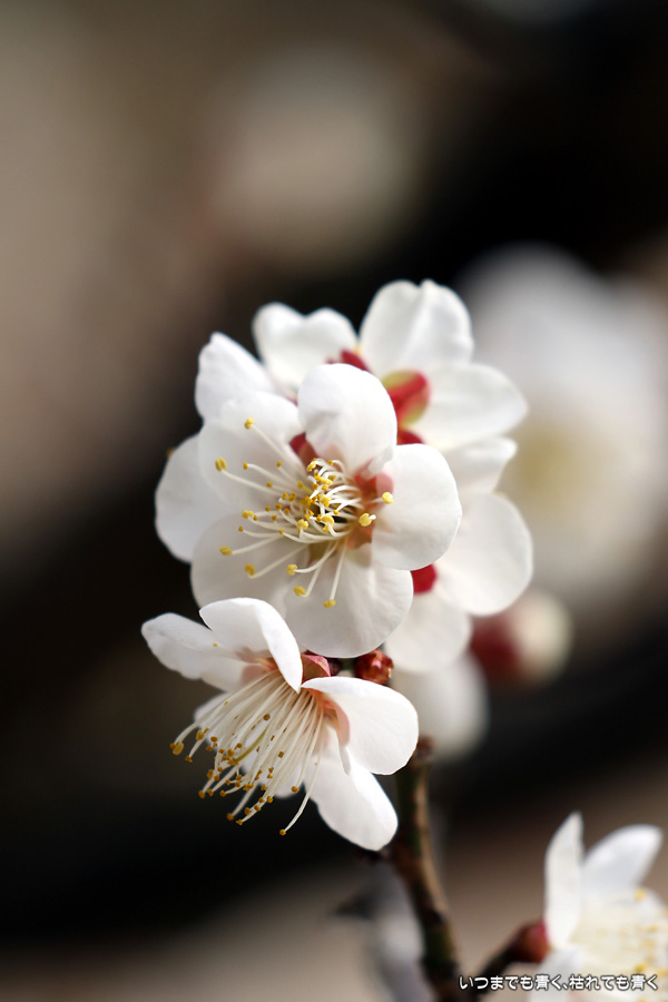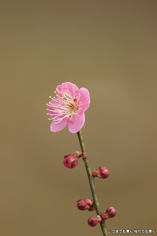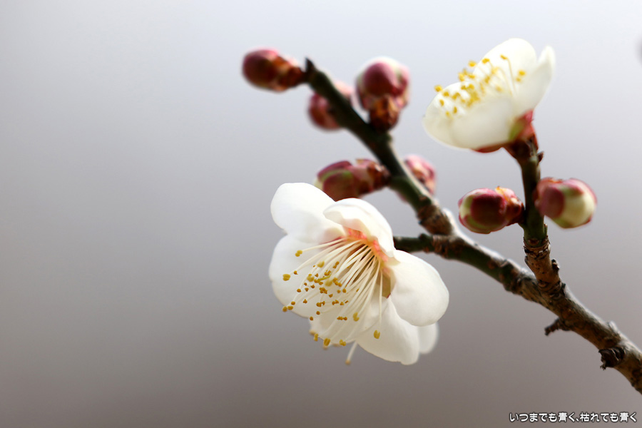 メジロを求めて岩津天満宮の梅林にやってきましたが、ここもメジロには出逢えませんでした。きれいに整備された梅林の梅の花はここもチラホラ。ひとつひとつの梅の花はとても美しいです。帰りに参拝のために訪れた境内の梅の花も撮影しました
