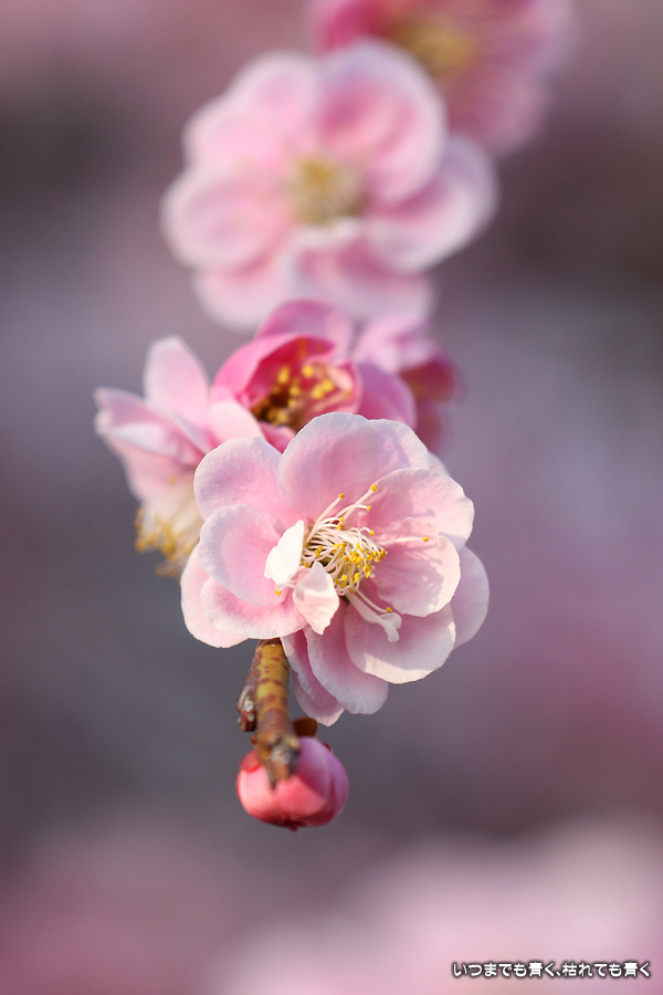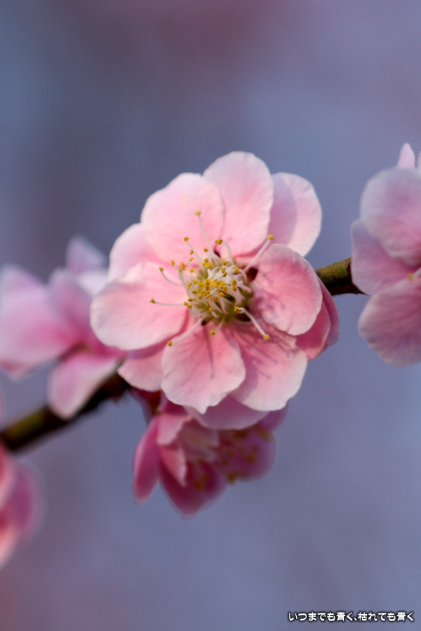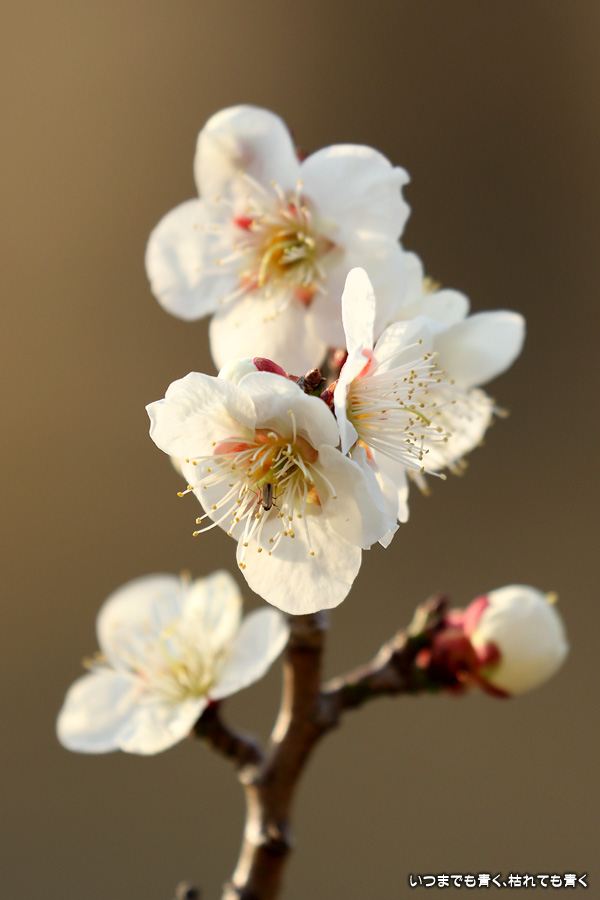 今年はメジロと出会えないので、状況を見るために娘と夕方立ち寄りました。やはりメジロはいませんでしたので、目につく梅だけ写真におさめて帰りました。