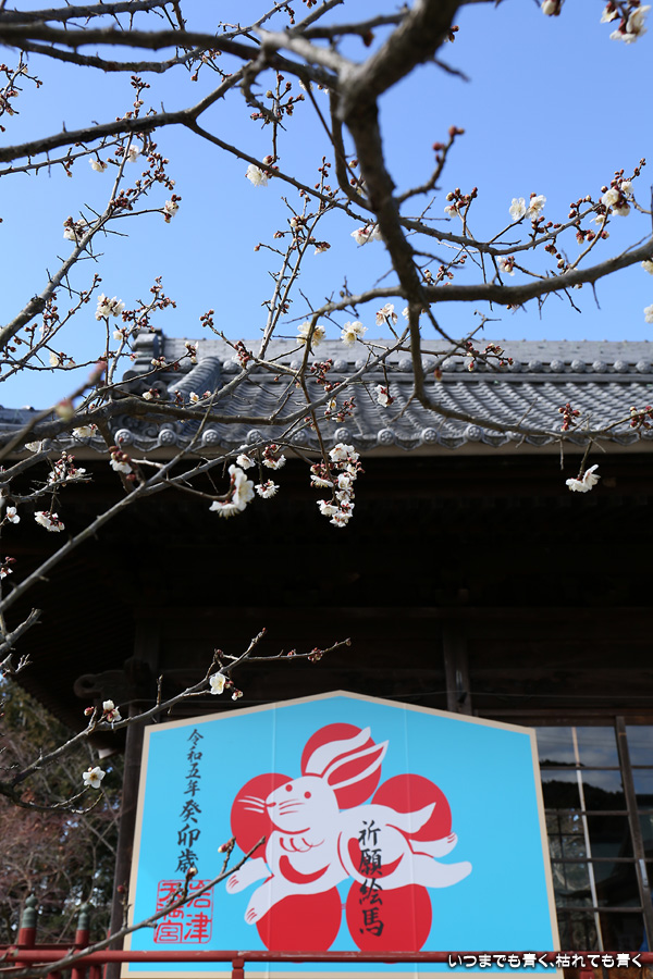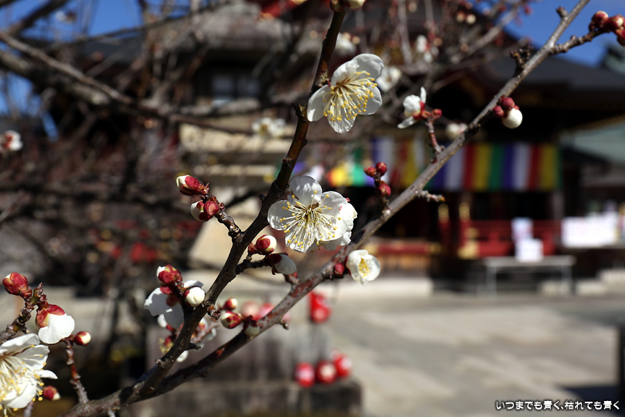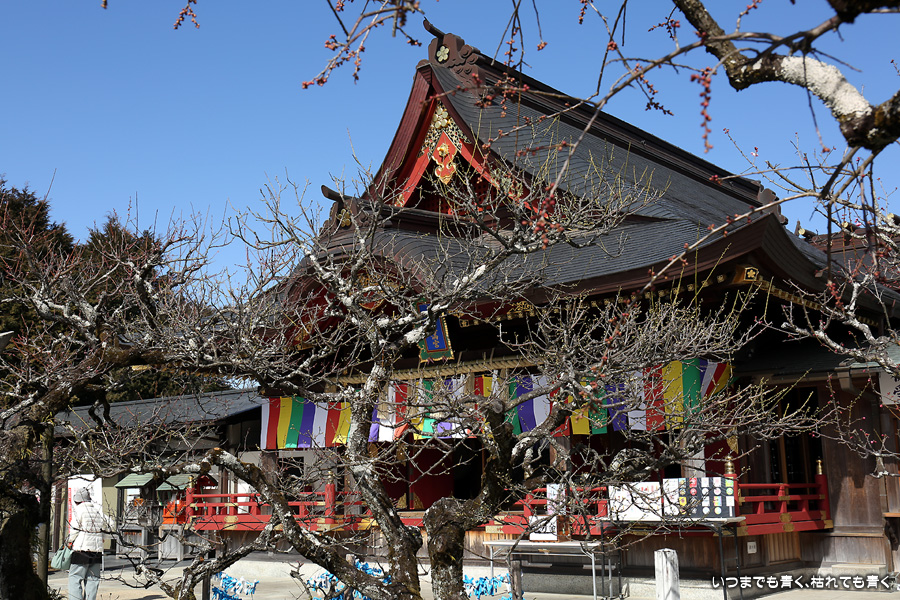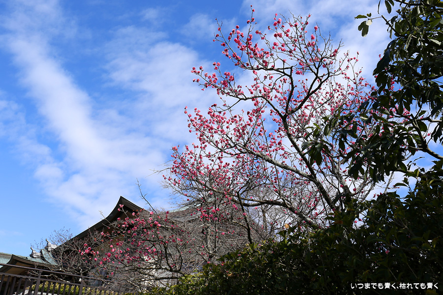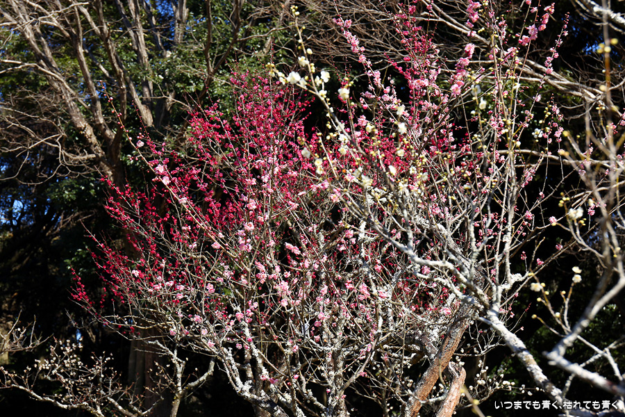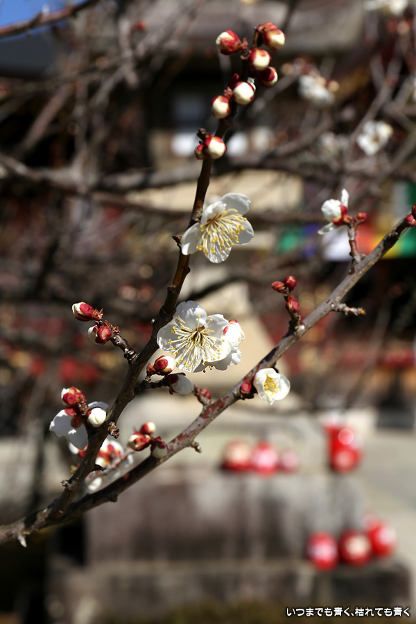 2023年2月16日(木)に撮影した、愛知県岡崎市・岩津天満宮の梅の花の写真です。