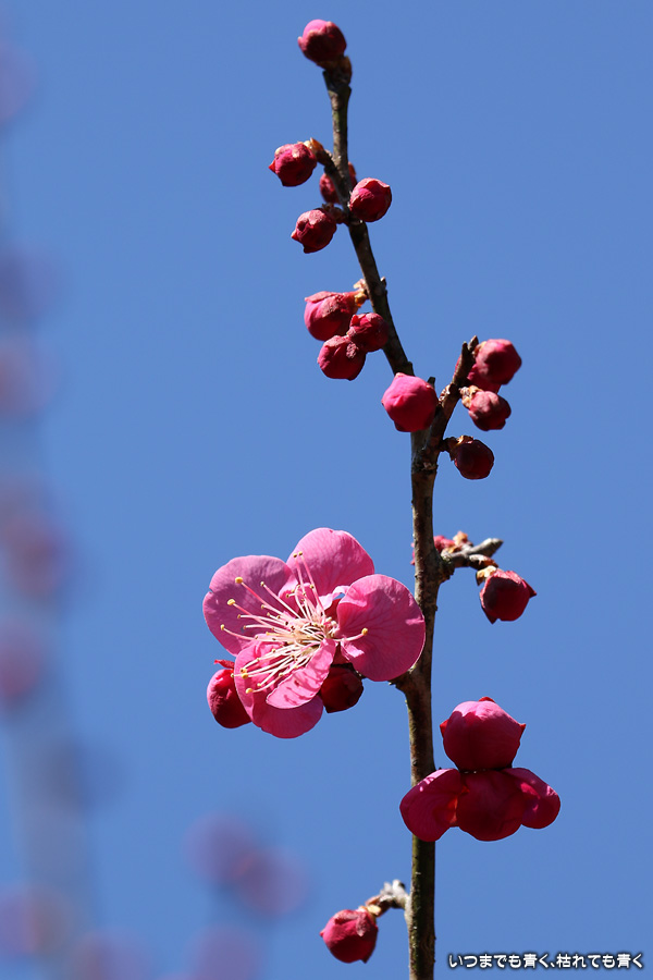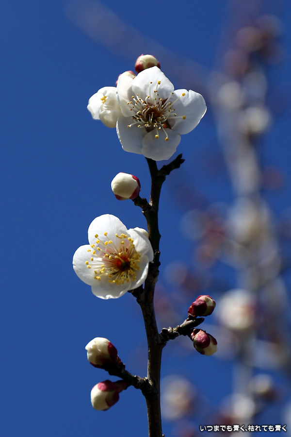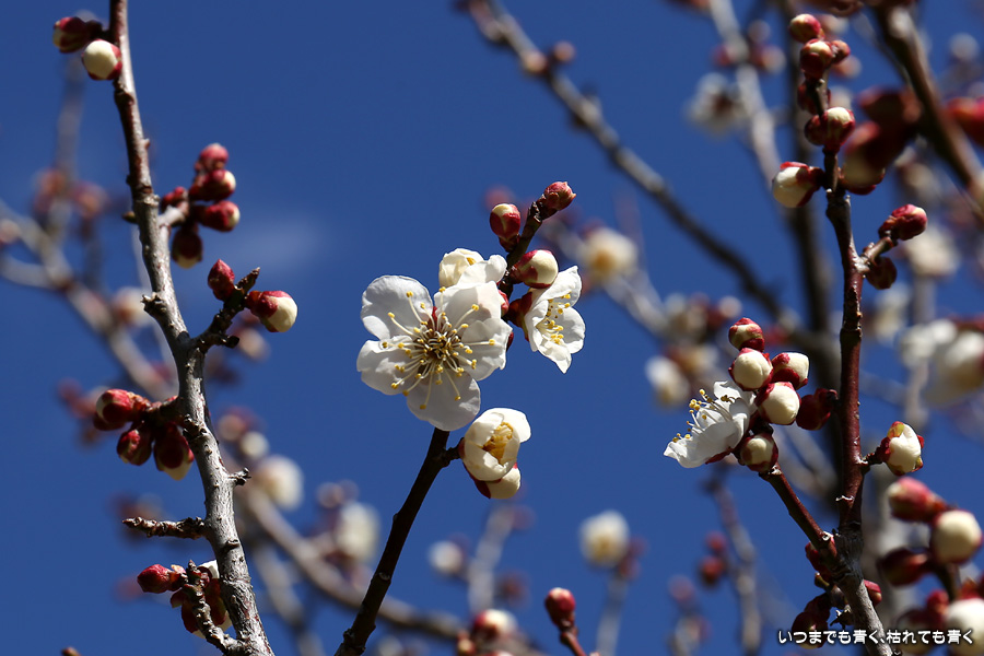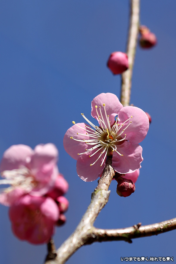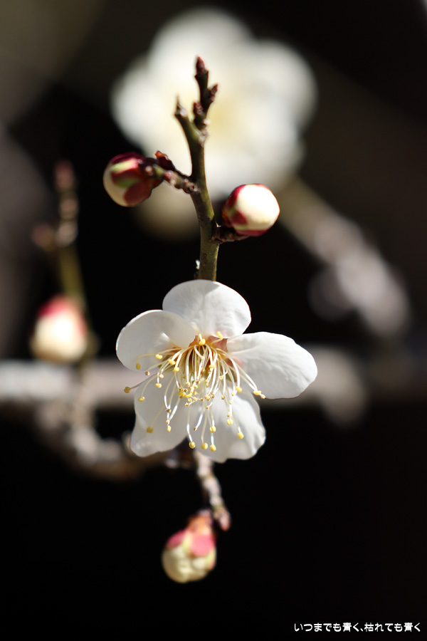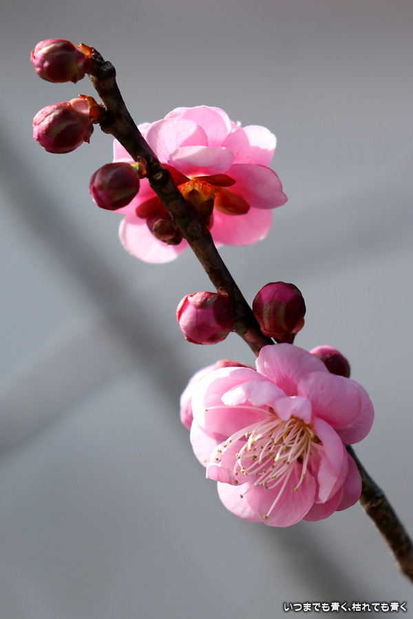 2023年2月16日(木)に撮影した、愛知県岡崎市・岩津天満宮の梅の花の写真です。