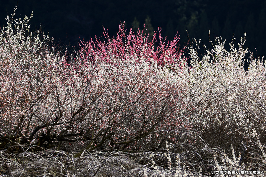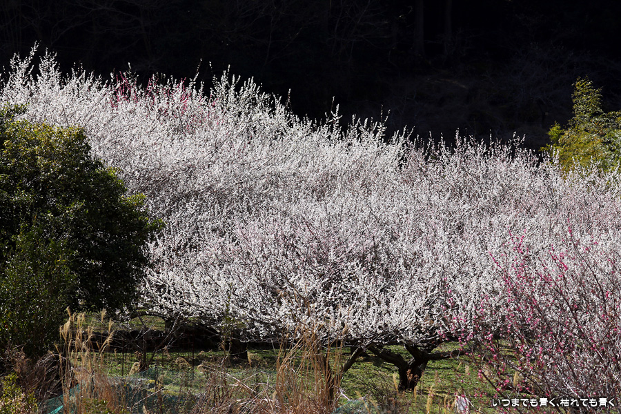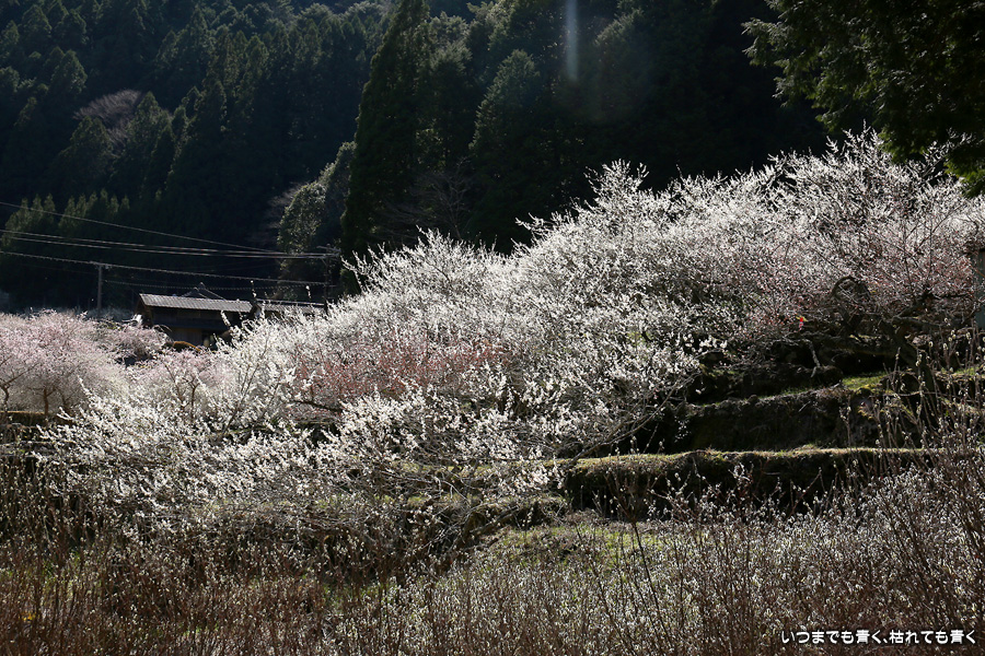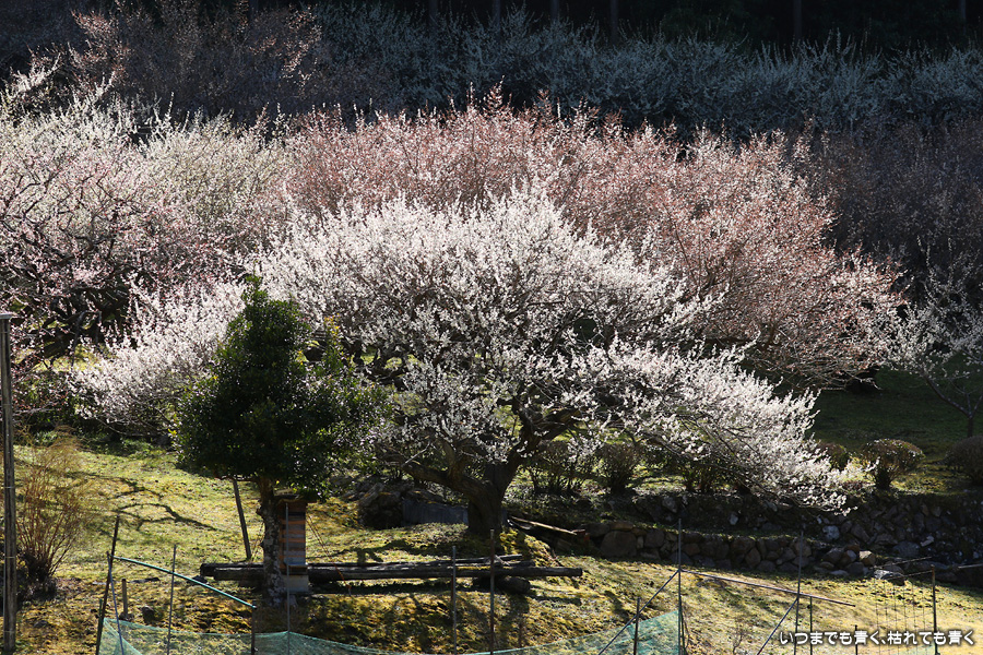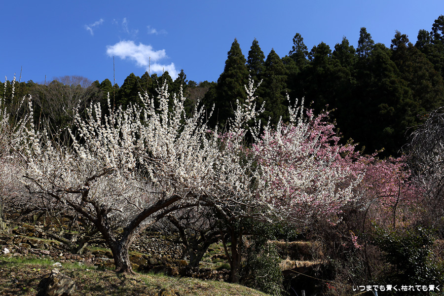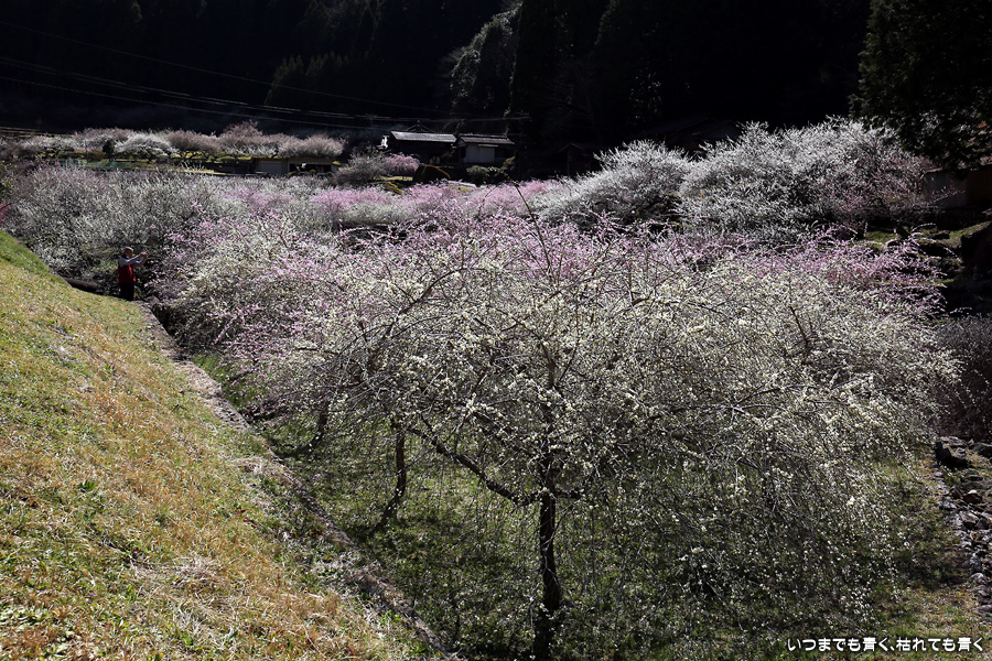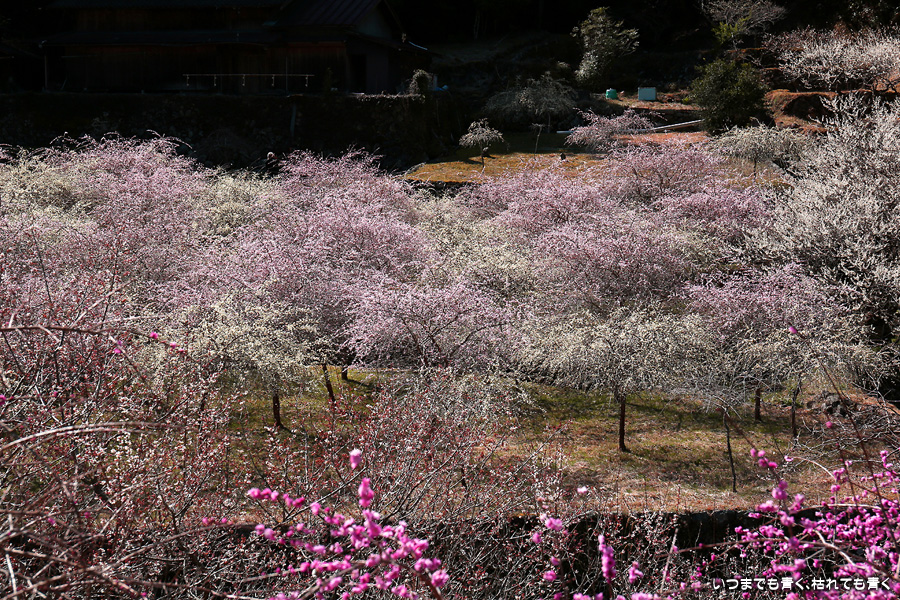 以前来た時よりも梅の花が少ない感じがしたので、地元の方に尋ね咲き具合を尋ねたら、ここの梅は観光用ではなく食用の梅収穫のための梅の木なので、収穫時期をずらした種類の木々を植えてあるそうです。なので、花も順番に開くということでまだこれから咲く木もたくさんあるとのことでした。民家や梅畑の間の迷路のような道を、小鳥のさえずりを聞きながら梅の花を見てのんびりと歩くのは心落ち着くいい時間です。