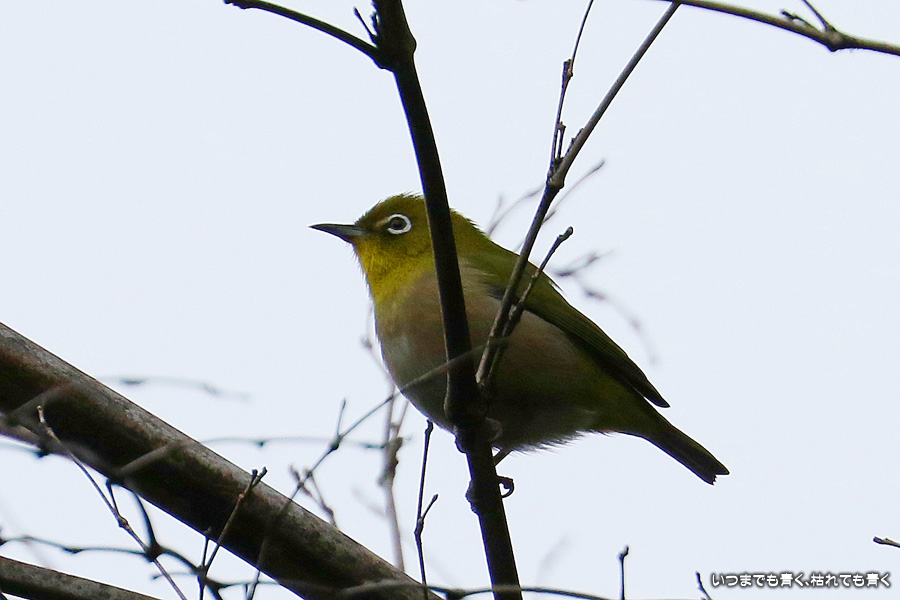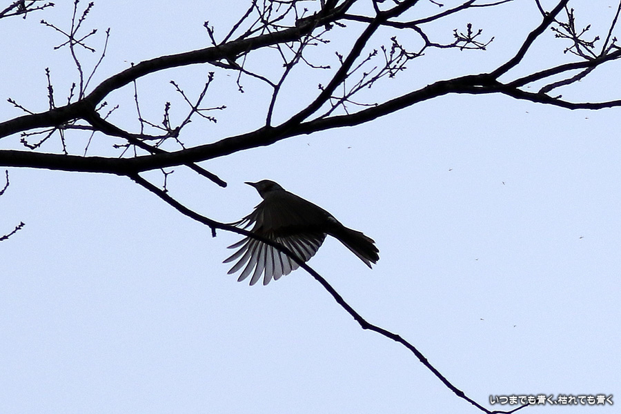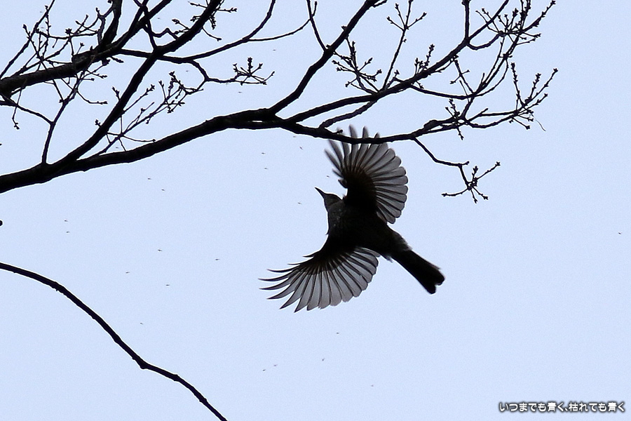 冬の夕刻の曇り空ということで撮影条件は良くありませんでした。メジロやジョウビタキにも会うことができましたがうまく撮れませんでした。羽根を広げて空を飛んでいる写真はすべてヒヨドリです。