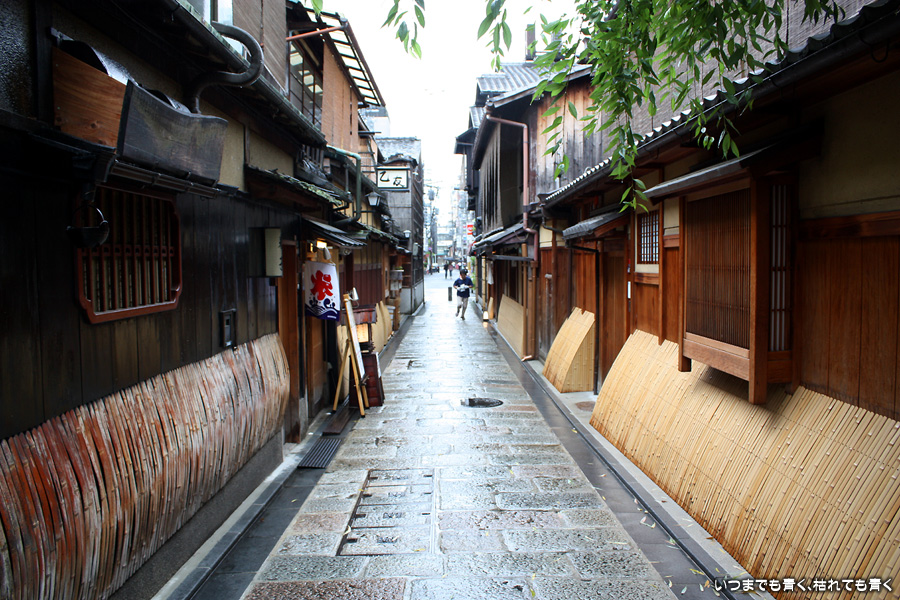 あいにくの雨です。そんなにひどい降りではありませんが傘は手放せない天気で少し残念ですが、かなりの距離を歩くつもりでしたので、日差しが強いよりはいいかと良いほうに考えることにします。スタートは、白川にかかる大和大路通の大和橋。そこから白川南通を白川沿いに行者橋のあるところまで歩くことにします。巽橋や辰巳大明神の付近は、いつ来ても落ち着く場所です。ここは毎回来ていますが、明るい時間に来たのは初めてなので新鮮な気持ちで楽しめました。白川沿いには柳が長い葉を垂らし、道端には紫陽花が美しい花を咲かせていて、雨の季節にぴったりの風情です。濡れて光る石畳にも落ち着きを感じます。このあたりは何もかも大好きです。