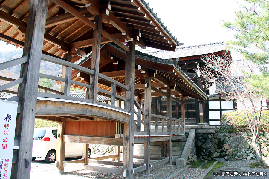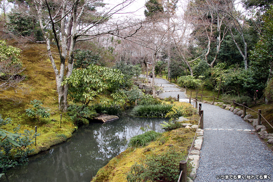 二日目は、嵐山の「ジオラマ京都JAPAN」に行くつもりでいたのですが、夜にネットで調べたら3月16日までメインテナンスのために休館とのことでしたので、同じ嵐山の天龍寺を拝観しました。天龍寺は、後醍醐天皇の菩提を弔うために足利尊氏を開基として開かれたお寺です。門をくぐってから庫裏に着くまでの距離がかなりあって、広大な土地を要していることを実感します。庫裏で拝観料を払って方丈を見学します。方丈の廊下の木の段差に座って曹源池庭園を眺めていると、ずっとこのままゆっくりと流れる贅沢な時間を過ごしたいと思ってしまいます。方丈を出て実際に曹源池庭園の中に入ることもできます。今は椿、梅、馬酔木くらいしかありませんが、曙馬酔木の花がとても可愛らしかったです。馬酔木はさだまさしの「まほろば」で若い頃に知った木ですが、実際の出会いが最近で、とても親近感を感じる木です。曹源池庭園の奥にある後醍醐天皇の尊像を祀る多宝殿から先は、百花苑という庭園となっています。ここも、今の季節は梅と南天くらいしか色鮮やかなものはありませんが、きれいに整備されていて、それぞれの花の見頃の時期には素晴らしい華やかさを誇る庭園だと感じます。