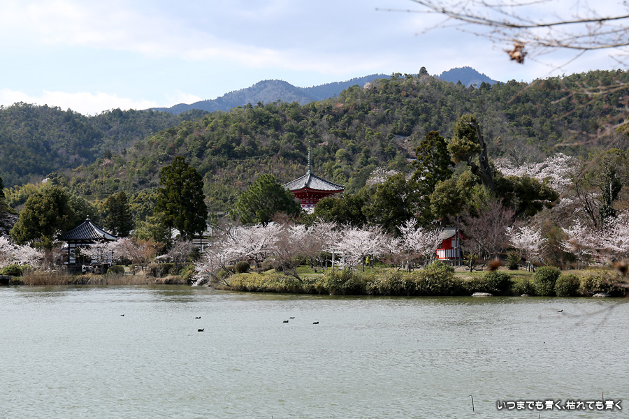 大覚寺は2015年の秋以来の参拝で、桜の季節は初めてとなります。今回はちょうど満開になろうとしている時で、お寺の方の説明によると、今が一番の見ごろだということでした。大沢池は時代劇では必ず出てくるロケ地で、ロケ地好きな私としては見覚えのある景色があって、その場面を思い起こしながら楽しく過ごすことができました。