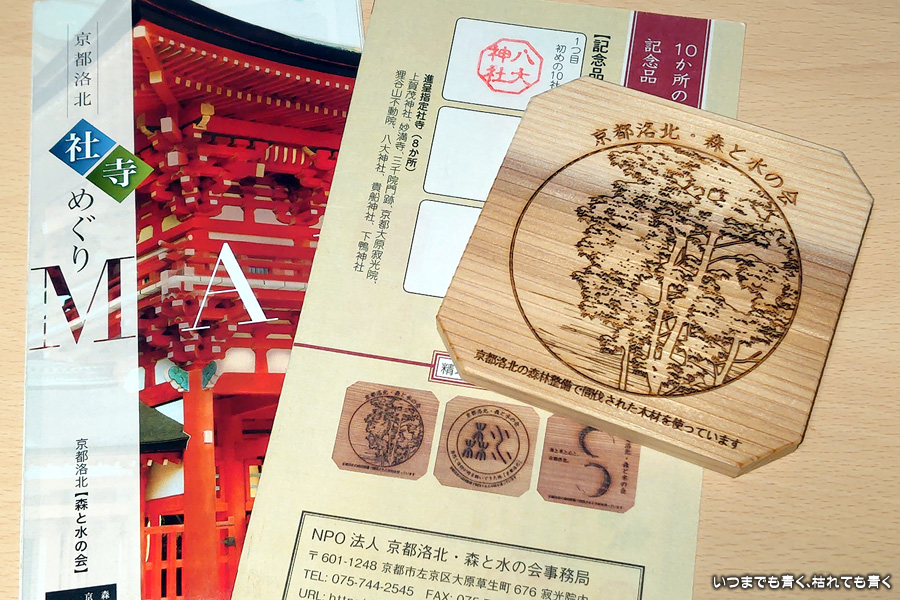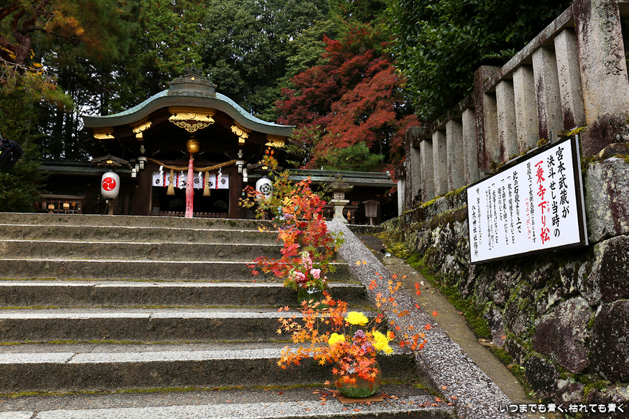 八大神社は詩仙堂の隣にある神社で、宮本武蔵が境内地である「一乗寺下り松(さがりまつ)」に於いて吉岡一門と決闘し、その決闘の前に奉拝した神社としても知られています。私は二度目の参拝となります。今回ここを訪れた理由の一つが、「京都洛北社寺巡り」の木のコースターをいただくためです。対象寺社の10ヶ所で御朱印をいただくと1枚いただくことができます。1枚目を2019年4月12日に上賀茂神社でいただいて以来、2枚目となります。3種類すべていただくまであと一枚となりました。