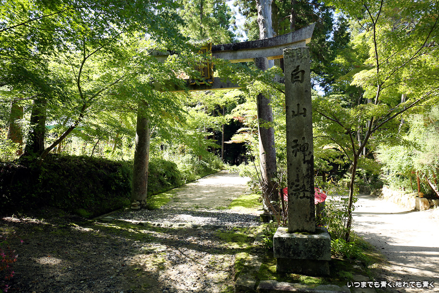 長寿寺は湖南三山のひとつです。湖東三山は何度も訪れていますが、湖南三山は初めての参拝となります。長寿寺の境内は広くはありませんが、お寺らしからぬ置物があったり、花畑があったりして、厳かな古いお寺の雰囲気の中に癒しポイントがあるのが新鮮です。参道から分かれて境内に白山神社が併設されています。